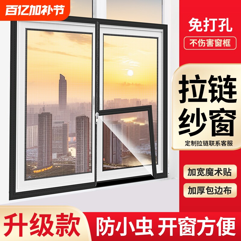 📚 家用防蚊纱窗网自装魔术贴纱窗纱网自粘式窗户简易内开外开窗沙帘
