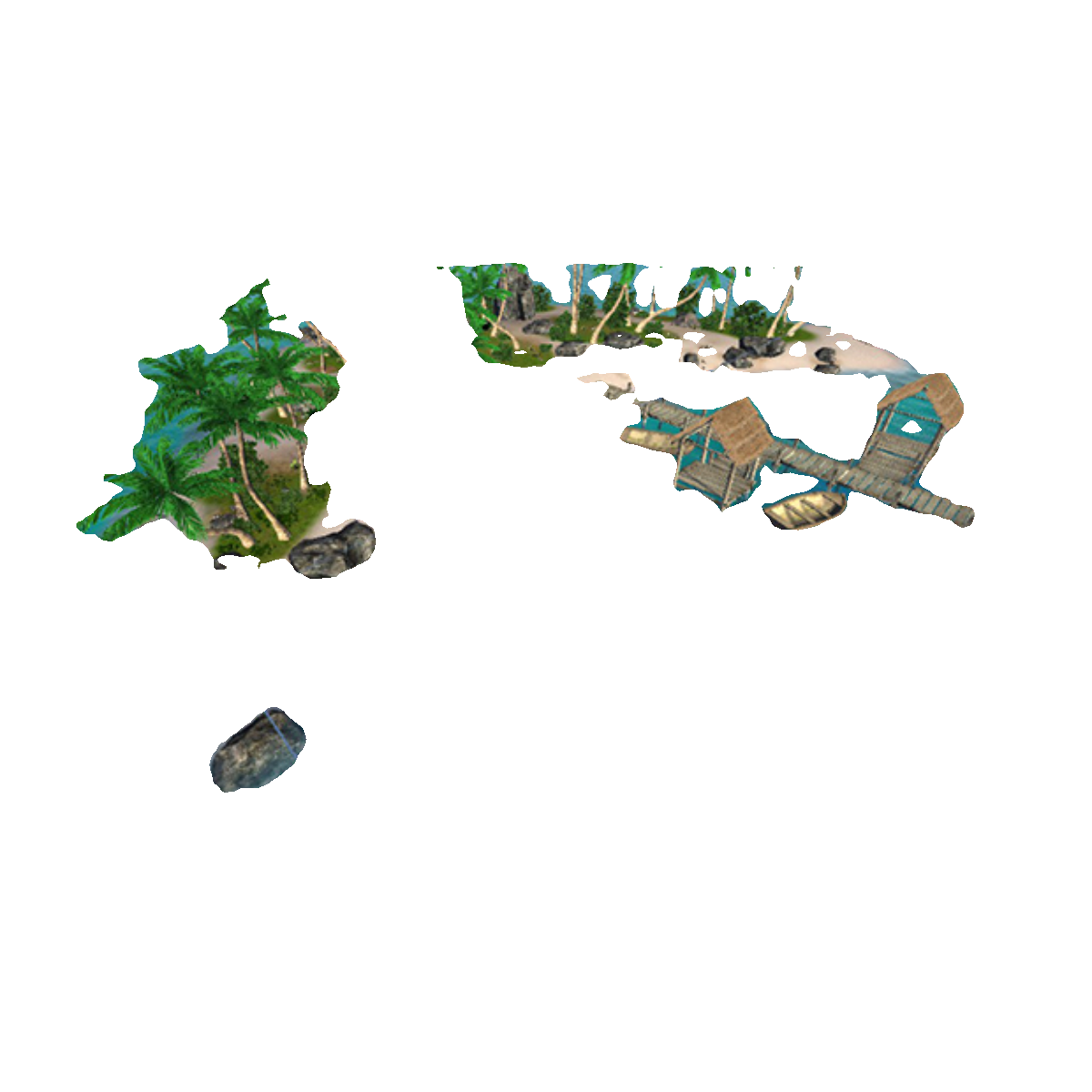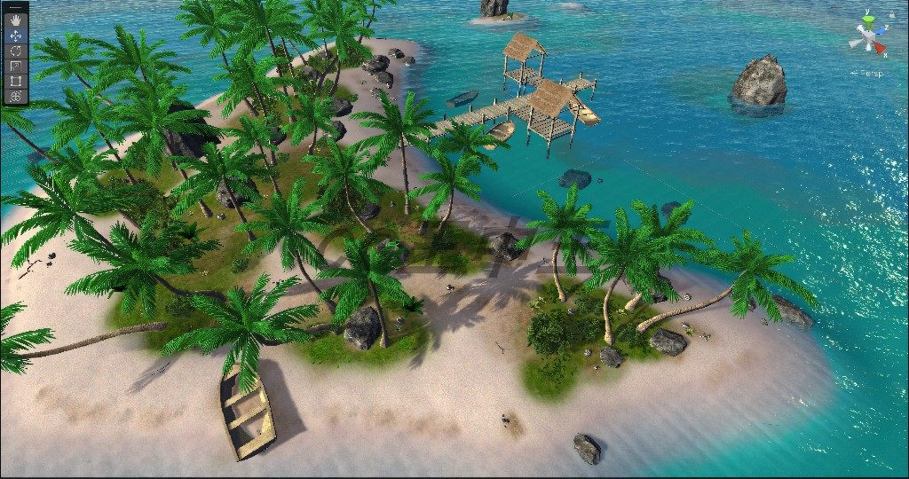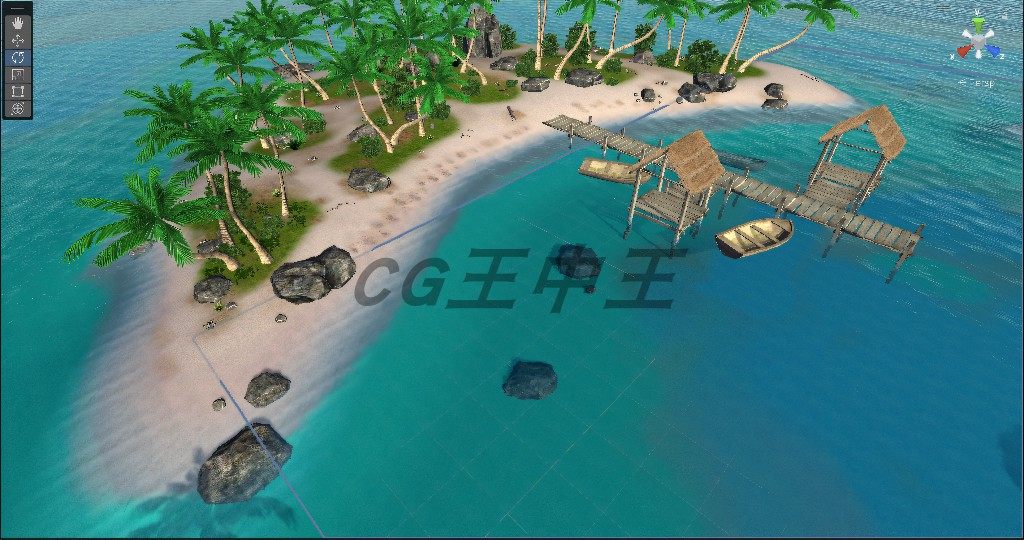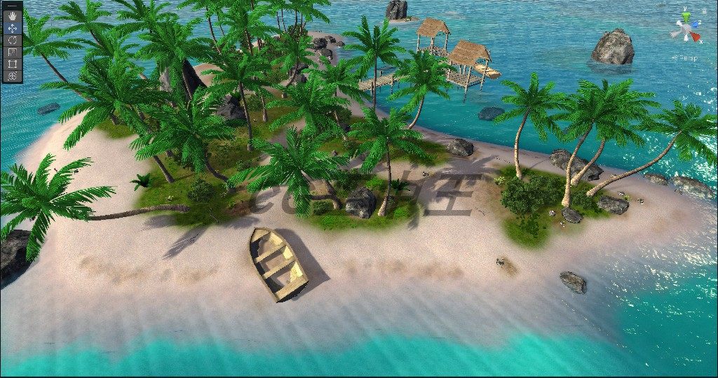 📚 unity3d 影视写实热带沙滩岩石木桥小船木船大海水孤岛屿场景