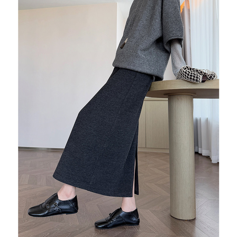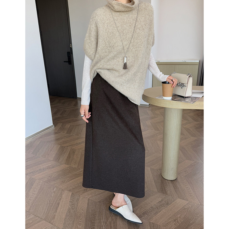 📚 开叉醋酸毛呢半身裙女秋冬绵羊毛直筒裙中长款棕色加绒加厚一步裙