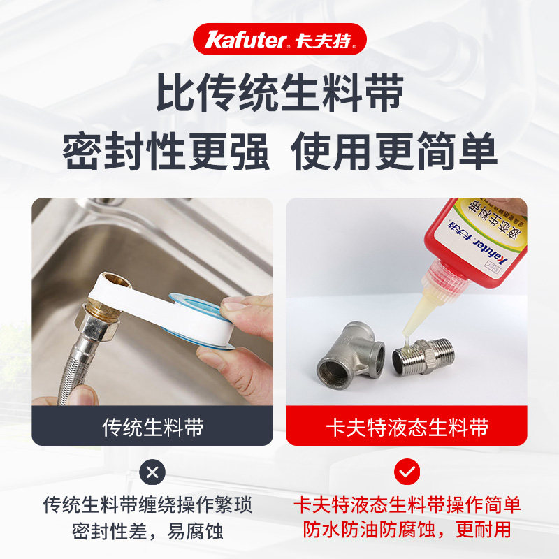 📚 卡夫特液态生料带金属管道密封胶螺丝胶强力防滑丝水管接头防漏厌氧胶螺丝防松防震动金属锁固强力胶