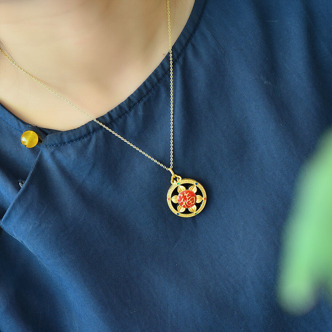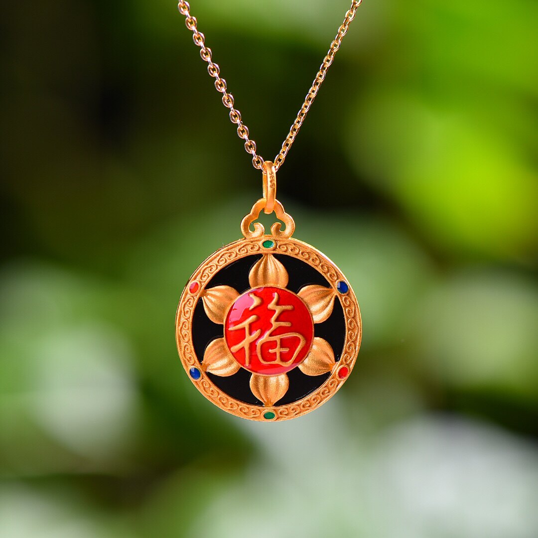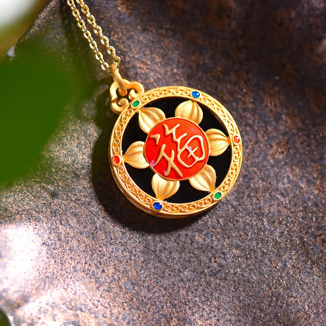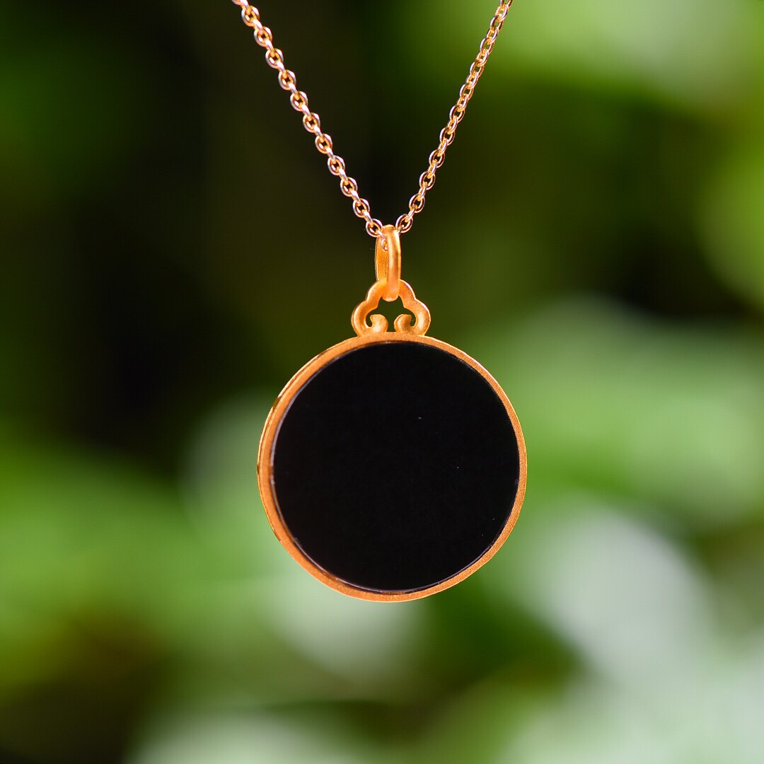 📚 新疆天然和田玉墨玉925银圆牌福字吊坠女款简约玉石项链锁骨链