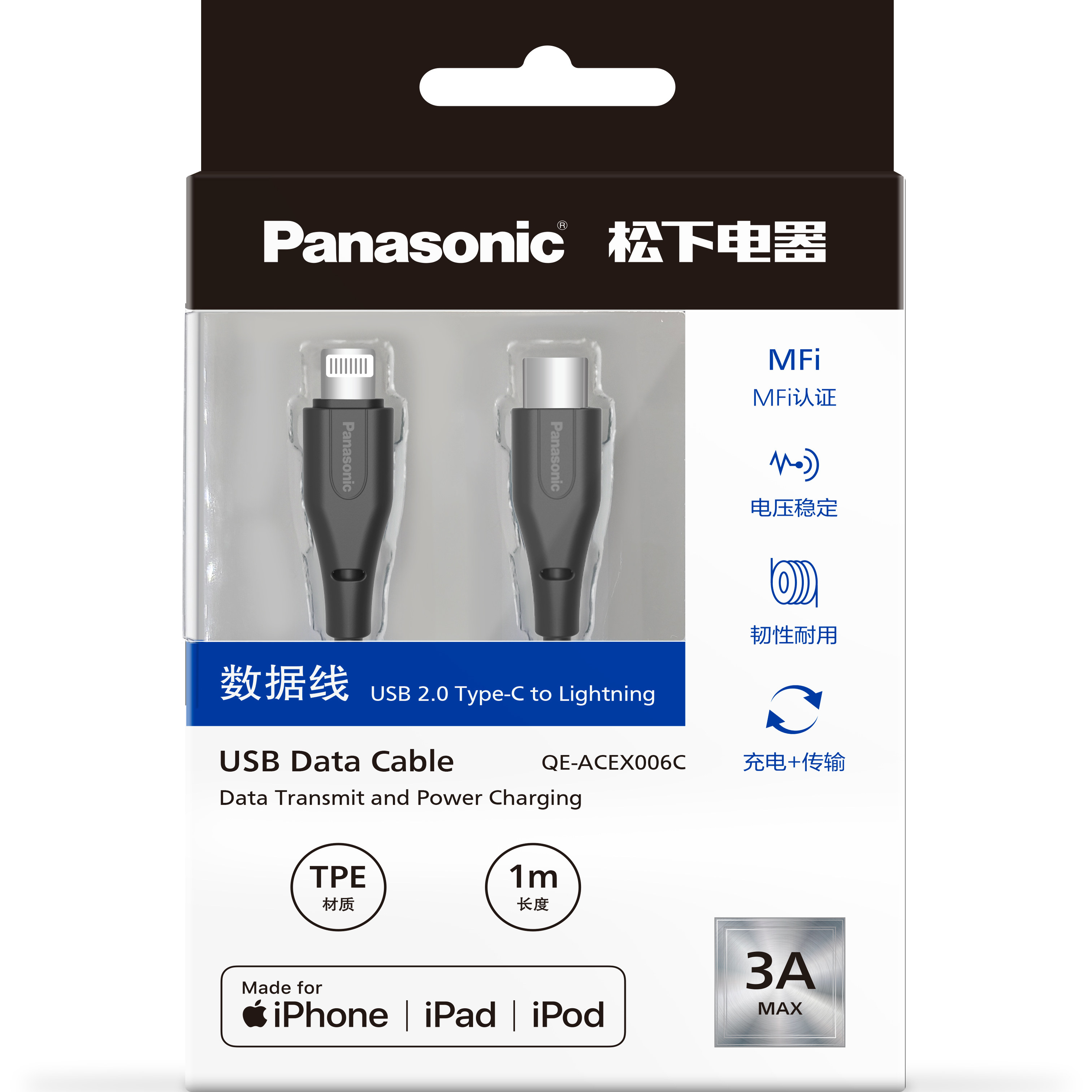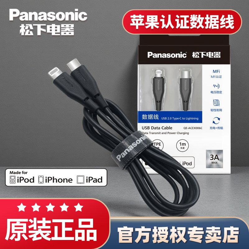 📚 松下USB 2.0 Type-C to Lightning数据线3A适用于苹果11 12 13 14 Pro Max数码配件 Apple手机iPad充电线