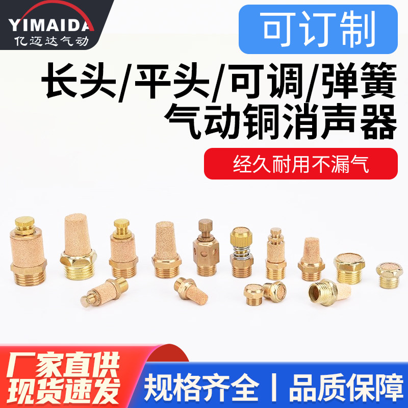 📚 铜消声器长头平头节流消音器气动1/2/3/4/6分电磁阀