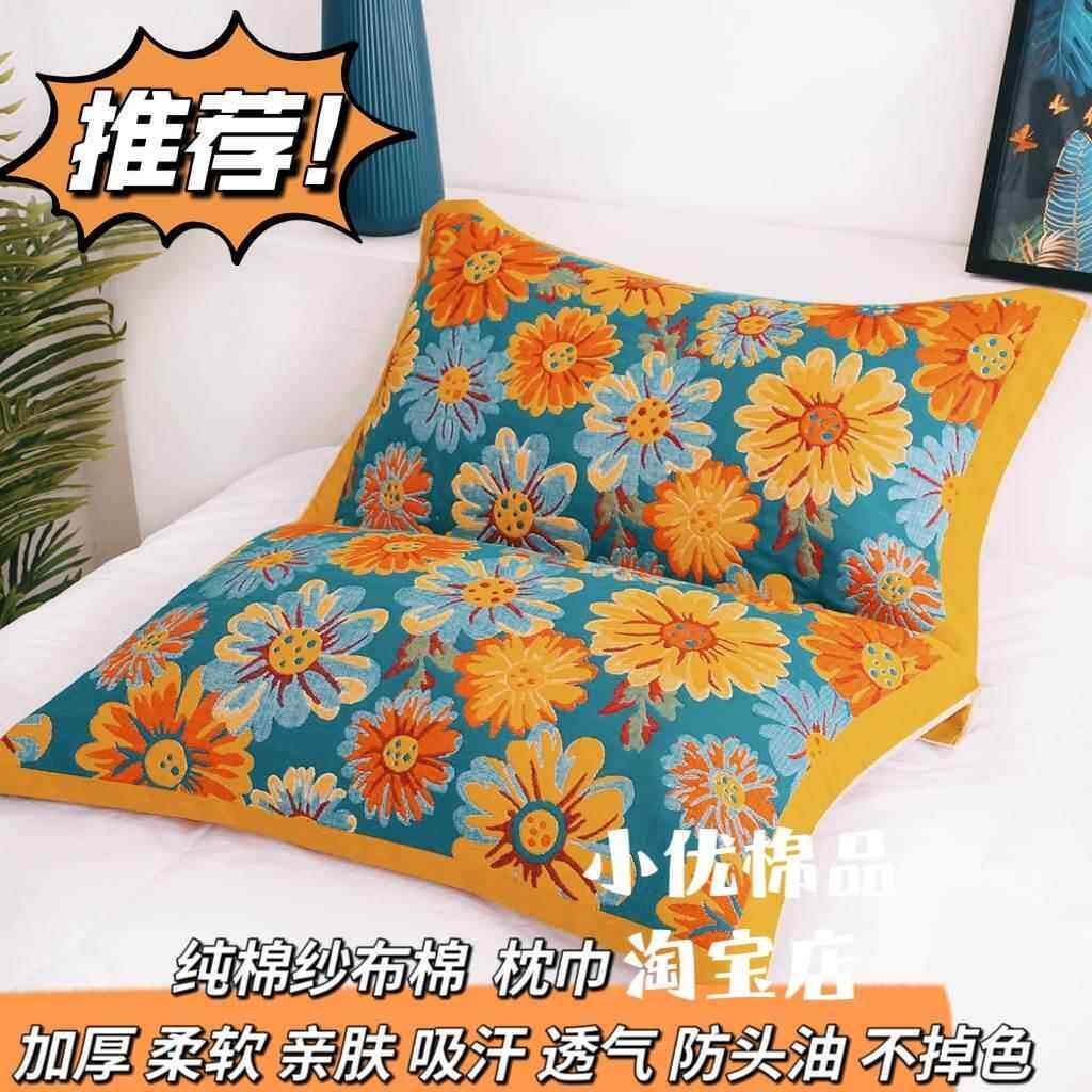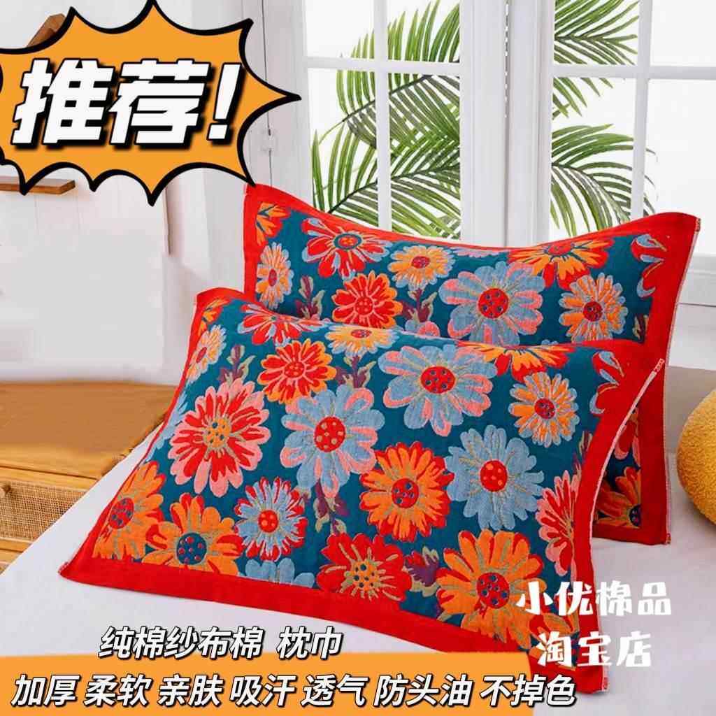 📚 高档十层纯棉纱布枕巾一对加大加厚柔软亲肤家用全棉枕头巾不掉毛