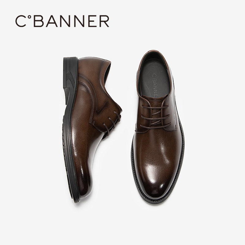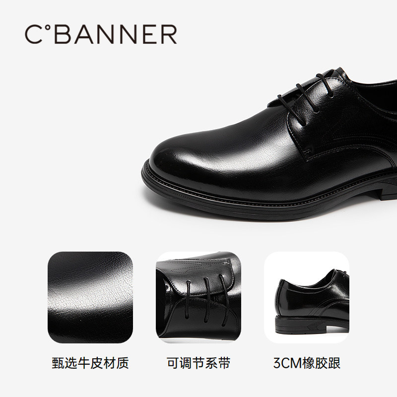 📚 千百度男鞋英伦风大头皮鞋气质百搭新款黑色男士休闲商务正装皮鞋
