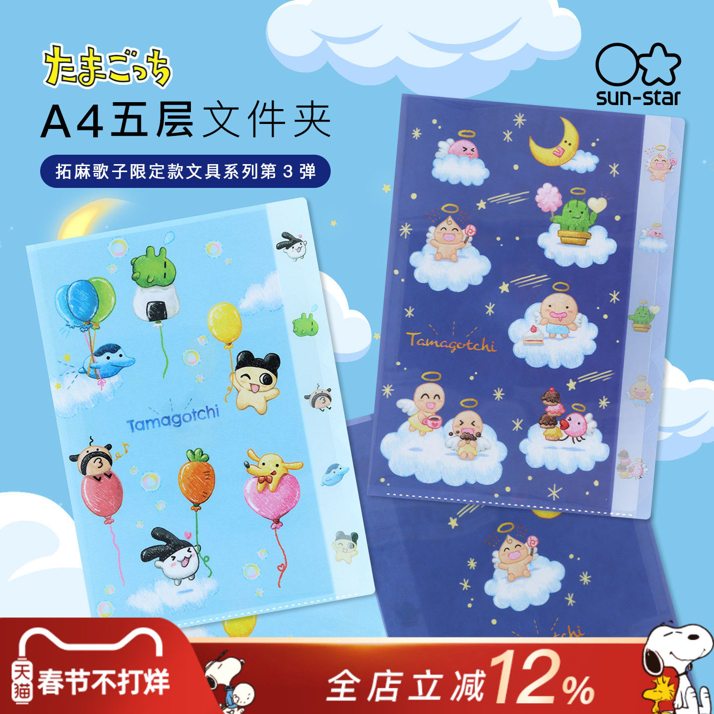 📚 sunstar太阳星拓麻歌子限定款系列A4五层透明文件夹卡通插画印花资料票据收纳学生便携PP材质可爱文件夹子