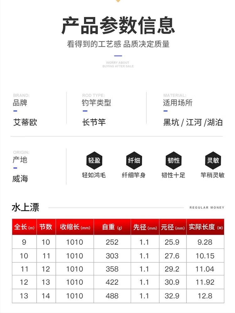 📚 艾蒂欧水上漂传统钓长杆手竿超轻超硬长竿炮杆12米13米鱼竿炮竿