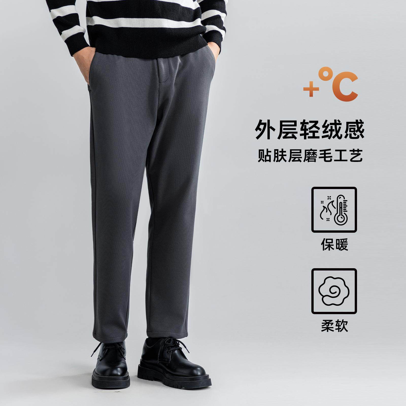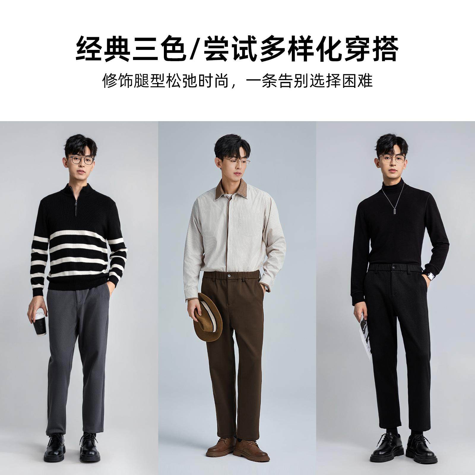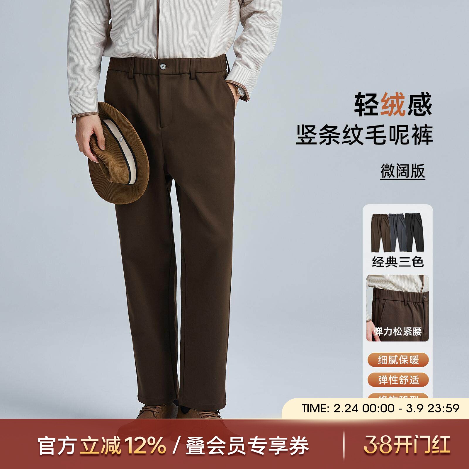 📚 海上公路轻绒感竖条纹毛呢裤男士秋冬季肌理感简约百搭锥形休闲裤