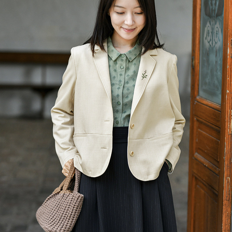 📚 24QDA-157【小枝青】前世今生复古温婉文艺西装领绣花秋上衣外套
