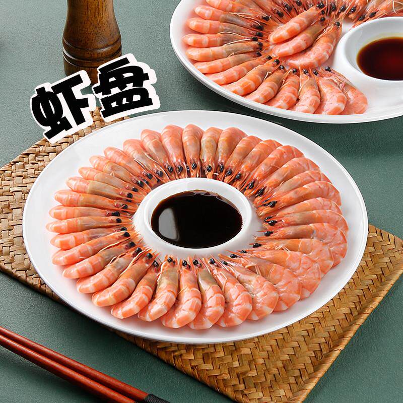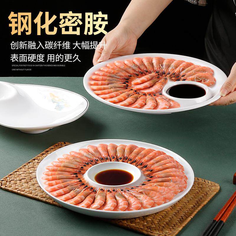 📚 虾盘带醋碟大虾白灼虾盘子商用水饺盘意境菜盘子装虾盘薯条盘白色