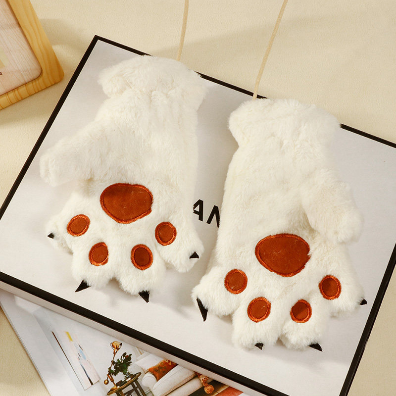 📚 猫爪熊掌手套女冬学生冬季加绒加厚全指网红可爱毛绒防寒保暖儿童