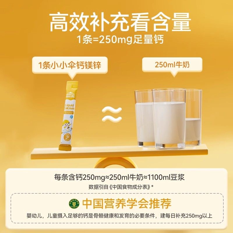 📚 新西兰小小伞钙镁锌液体钙儿童宝宝婴幼儿补钙乳钙镁锌30条/盒