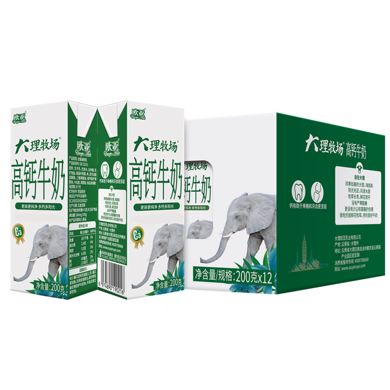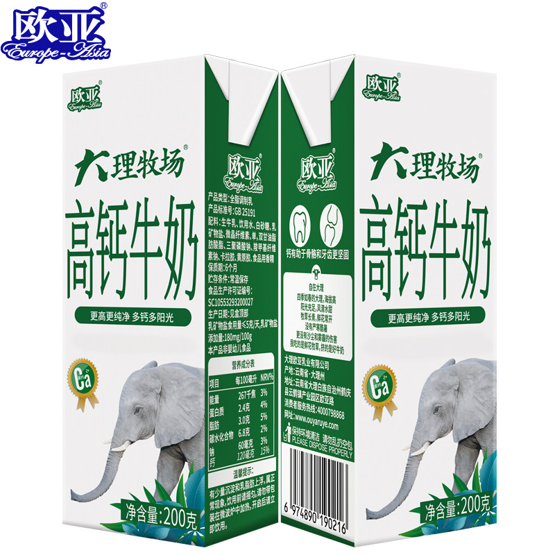 📚 【日期新鲜】欧亚大理牧场高钙牛奶200g*12盒礼盒装早餐乳制品