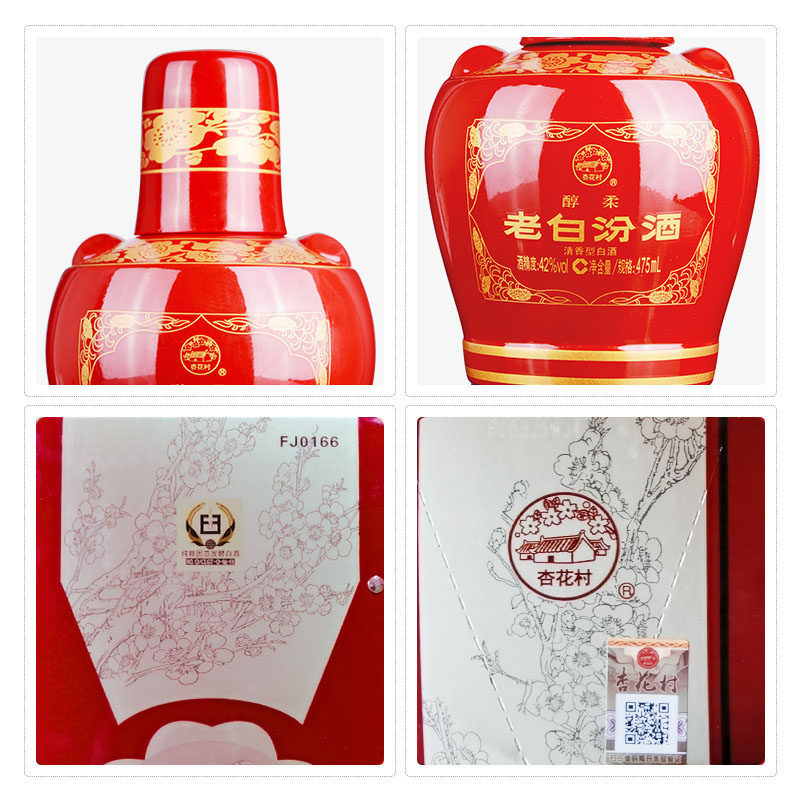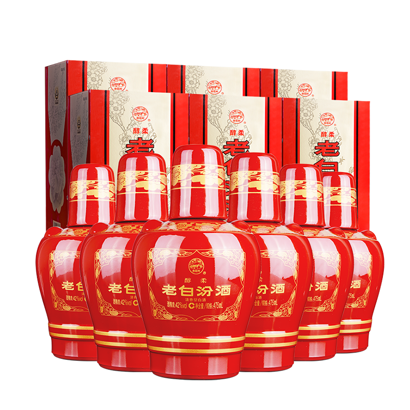 📚 【官方正品】山西汾酒杏花村酒 42度醇柔老白汾酒475mL*6瓶整箱