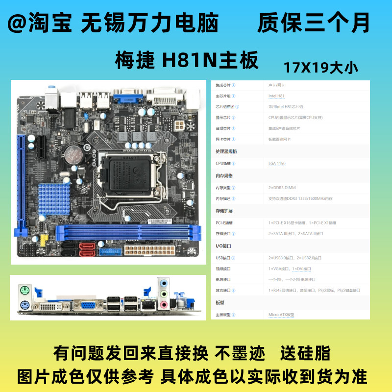 📚 SOYO/梅捷SY-H81N 全固版 17X19 迷你小主板1150针 集显 H81主板