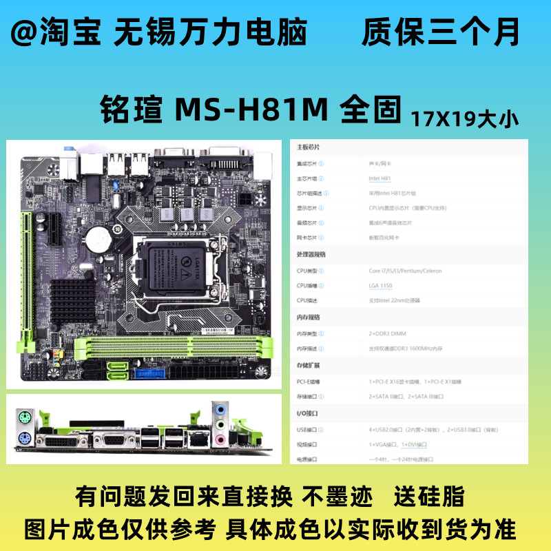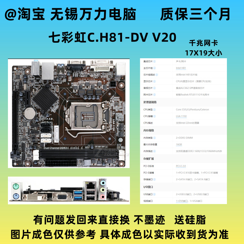 58¥ CZ057 JO26UPxouZK¥ https://m.tb.cn/h.7vULJMK SOYO/梅捷SY-H81N 全固版 17X19 迷你小主板1150针 集显 H81主板 --------------------- 【原售价】343.8元 【现售价】54元。