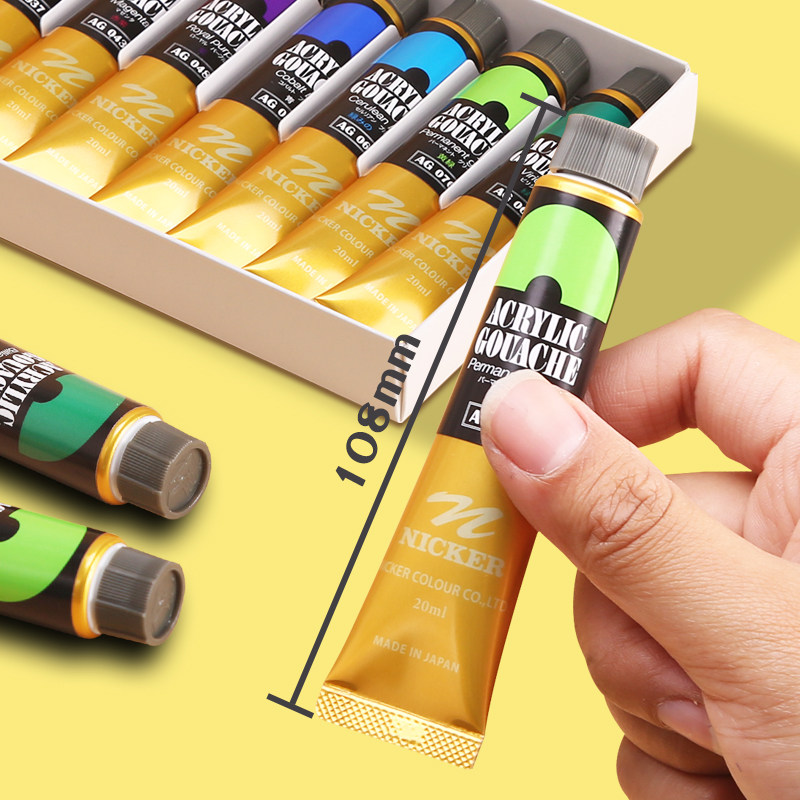 📚 官方旗舰店 日本进口NICKER丙烯颜料20ML单支自选管状黑色白色金色彩墙绘霓嘉管装丙烯画专用工具不透明丙烯