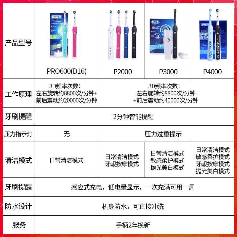 📚 博朗欧乐b/oralb电动牙刷P2000/P4000成人声波旋转式3D成人P3000