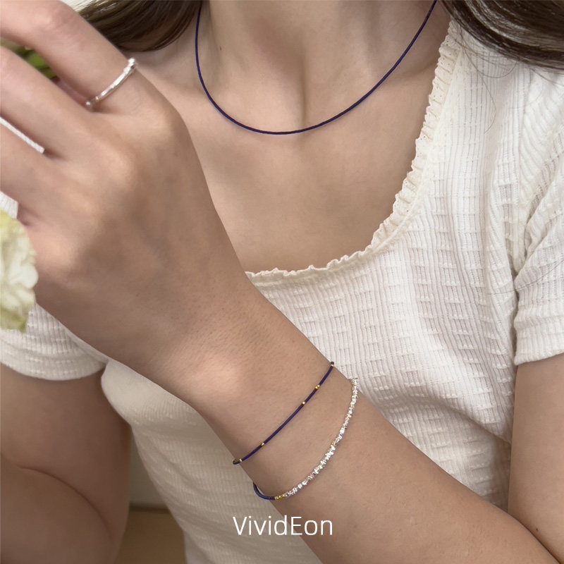 📚 【极细 天然青金石】VividEon 碎银子 撞色叠戴 手链女手串925银