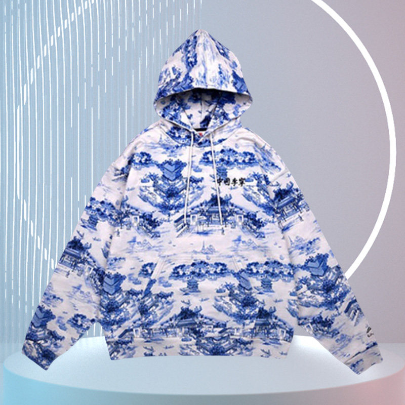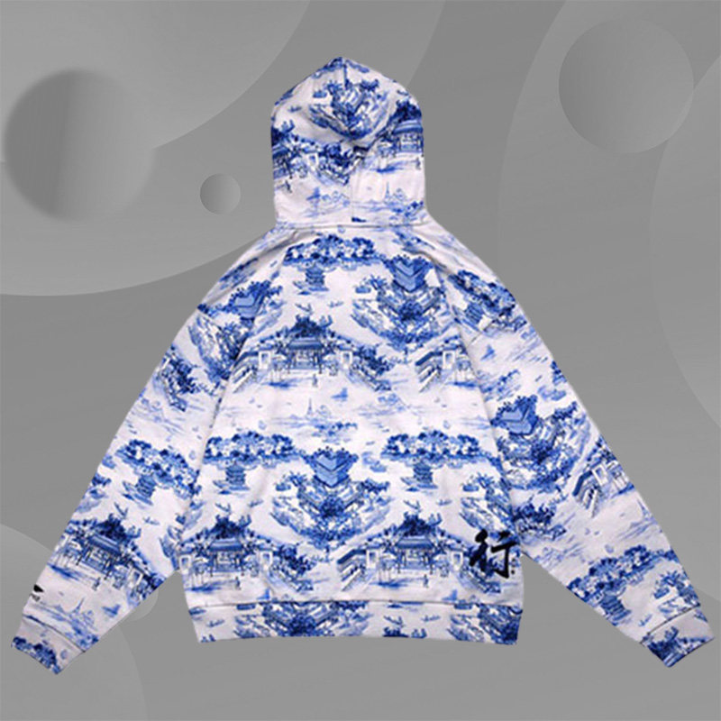 📚 中国李宁青花瓷卫衣连帽男女中国风走秀款华晨宇同款外套AWDQ253