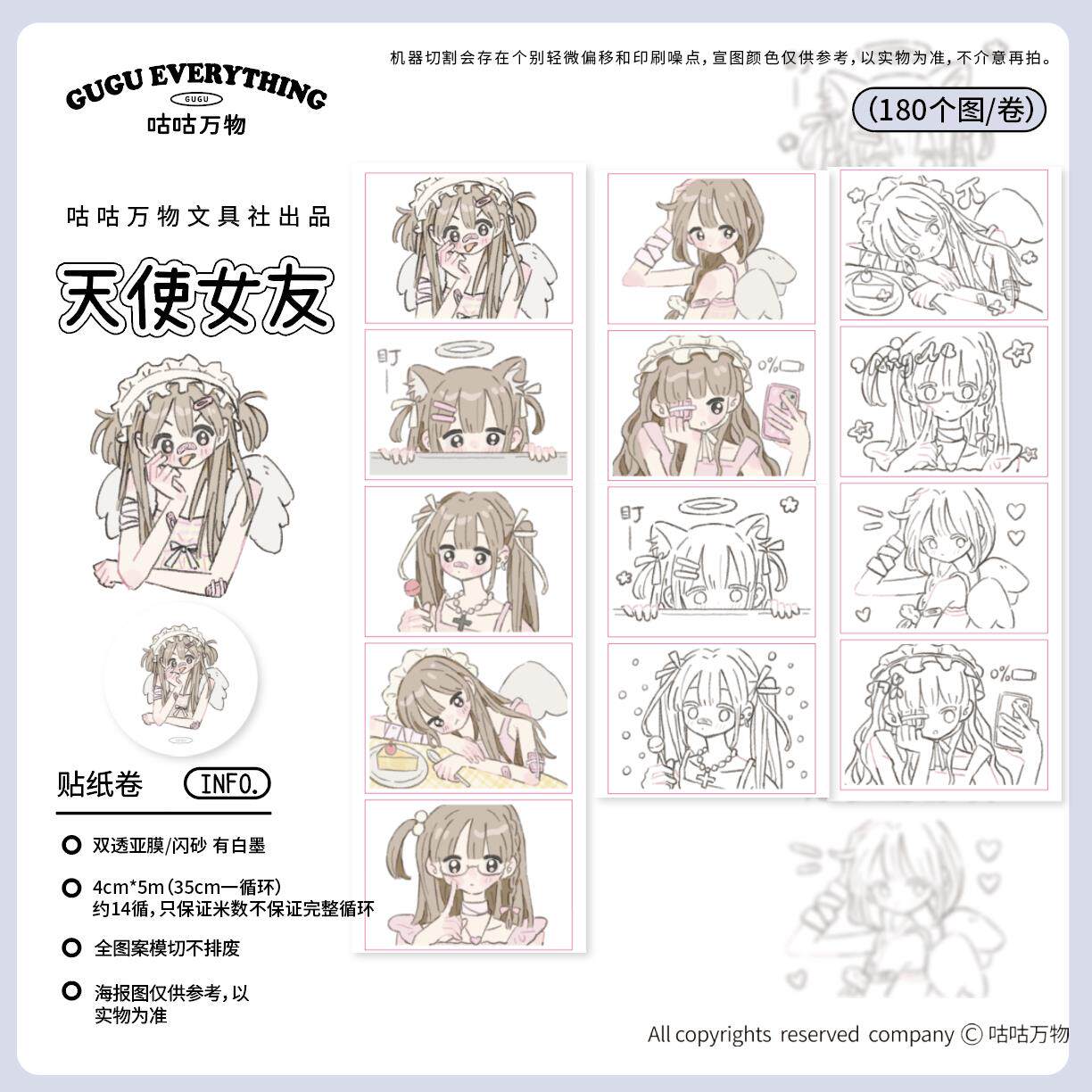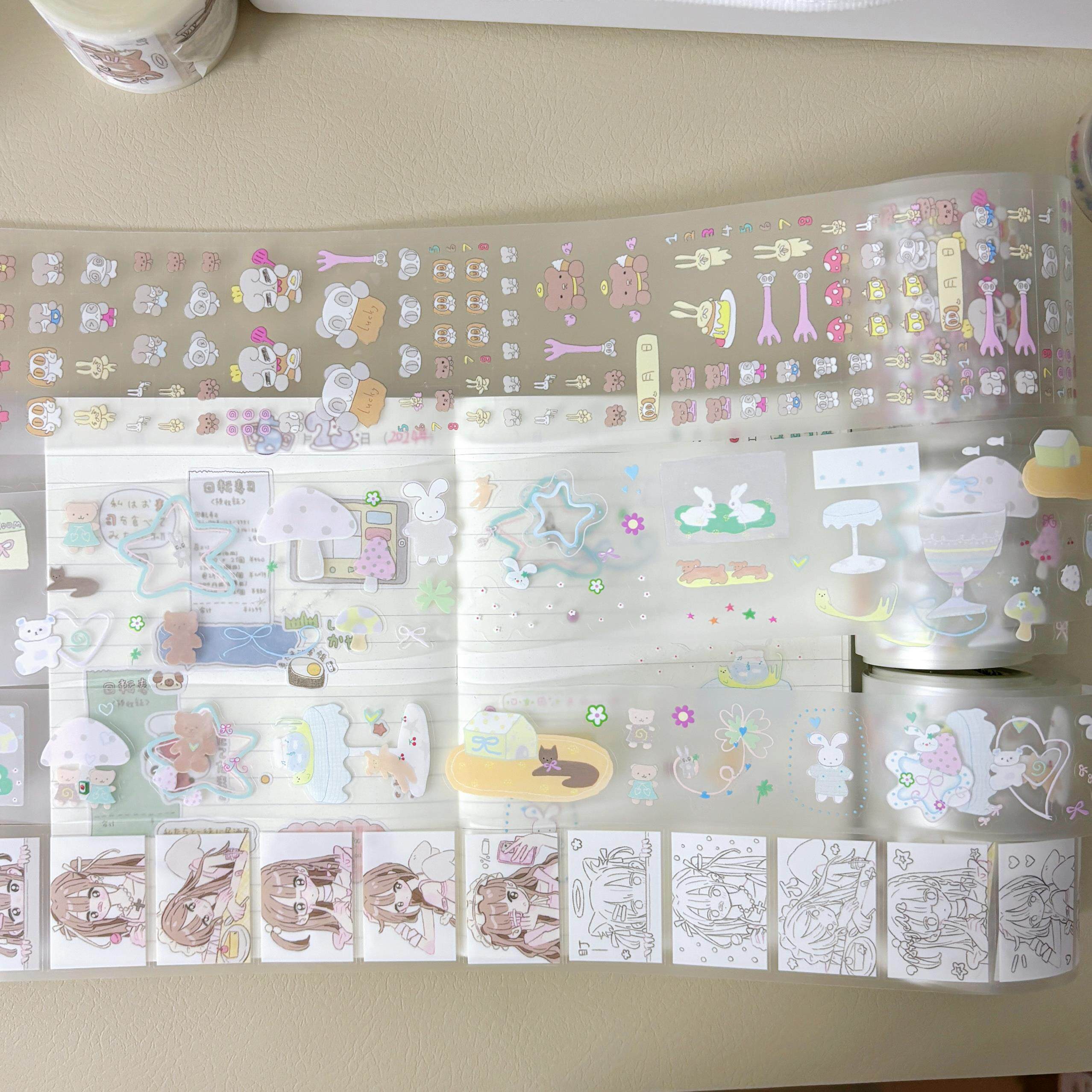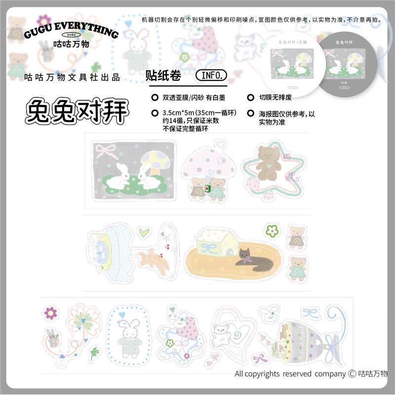 📚 咕咕万物分装人物熊猫方块贴纸卷可书写手帐韩系可爱少女追星双透