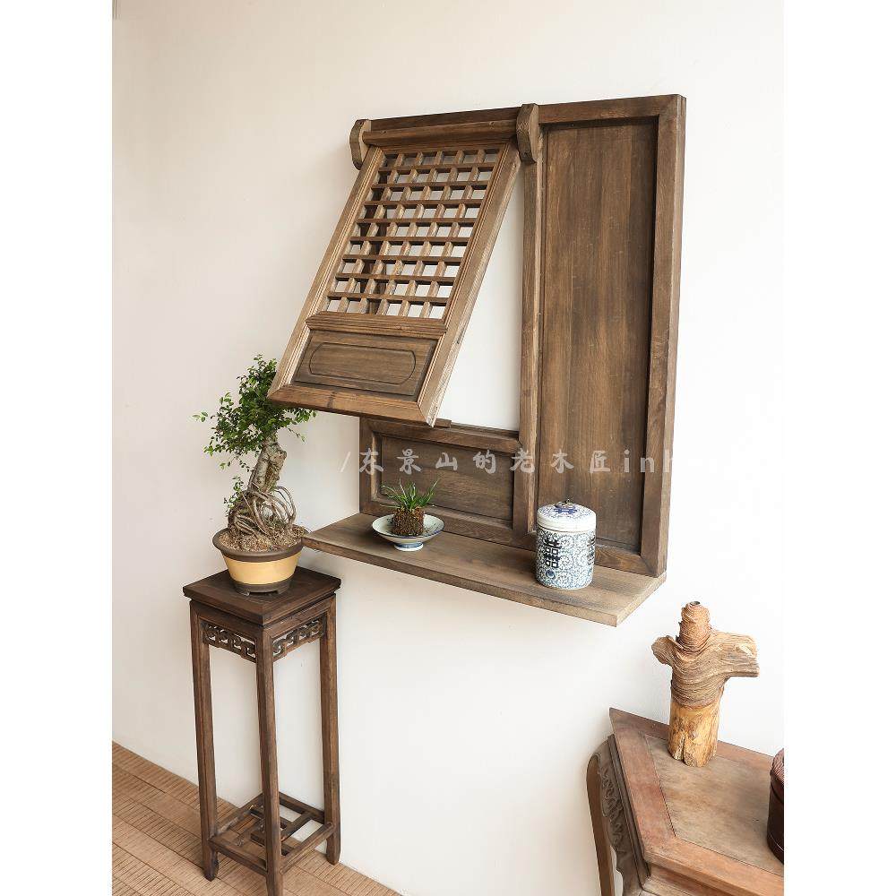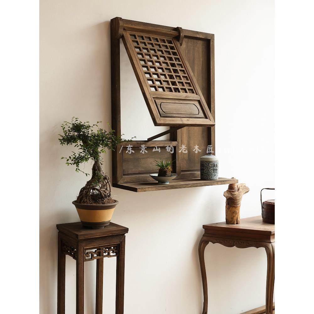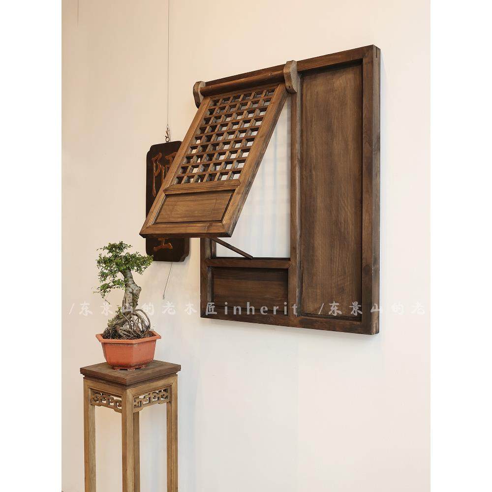 📚 中式上翻窗仿古做旧置物板支摘窗古风复古花窗挂件装饰东阳木雕