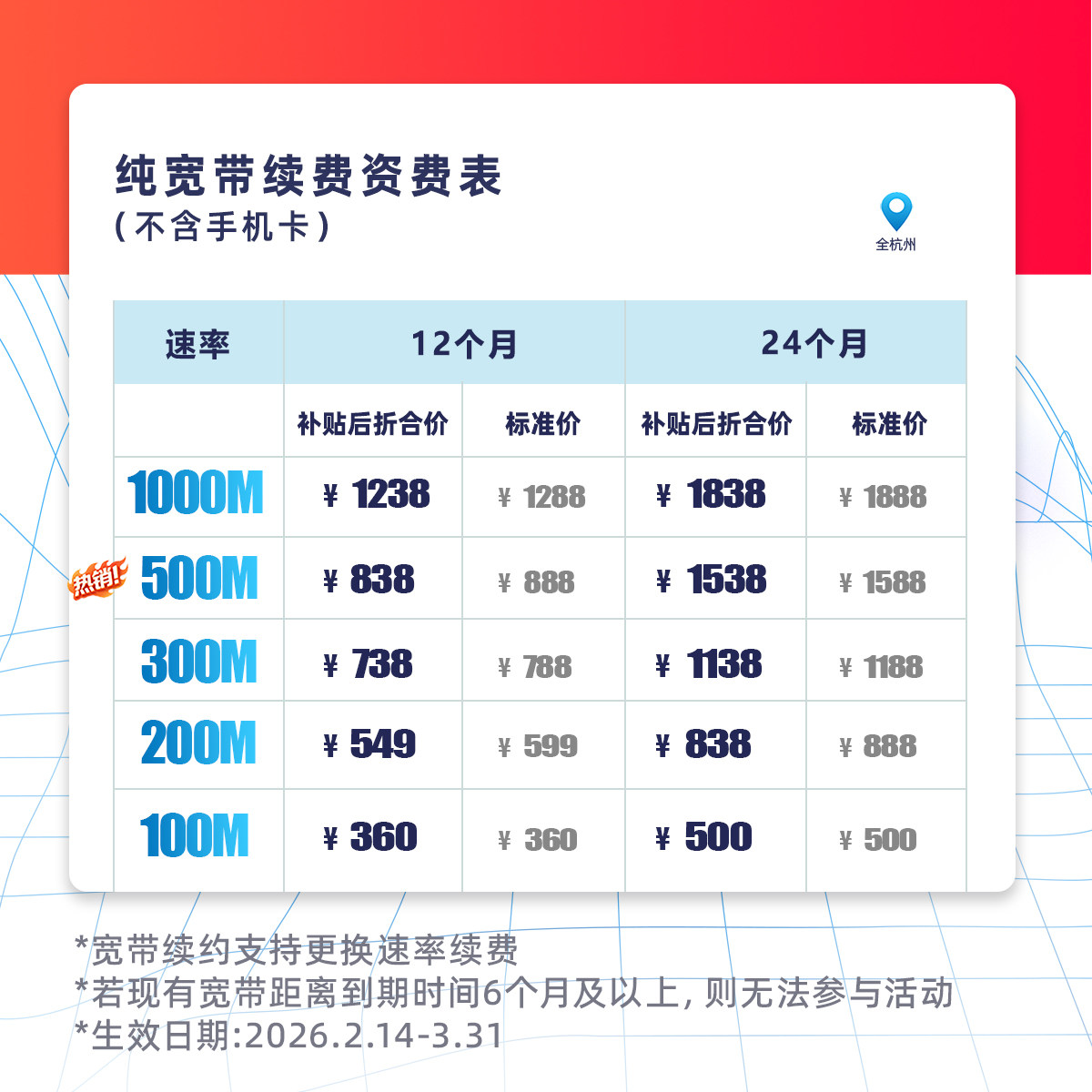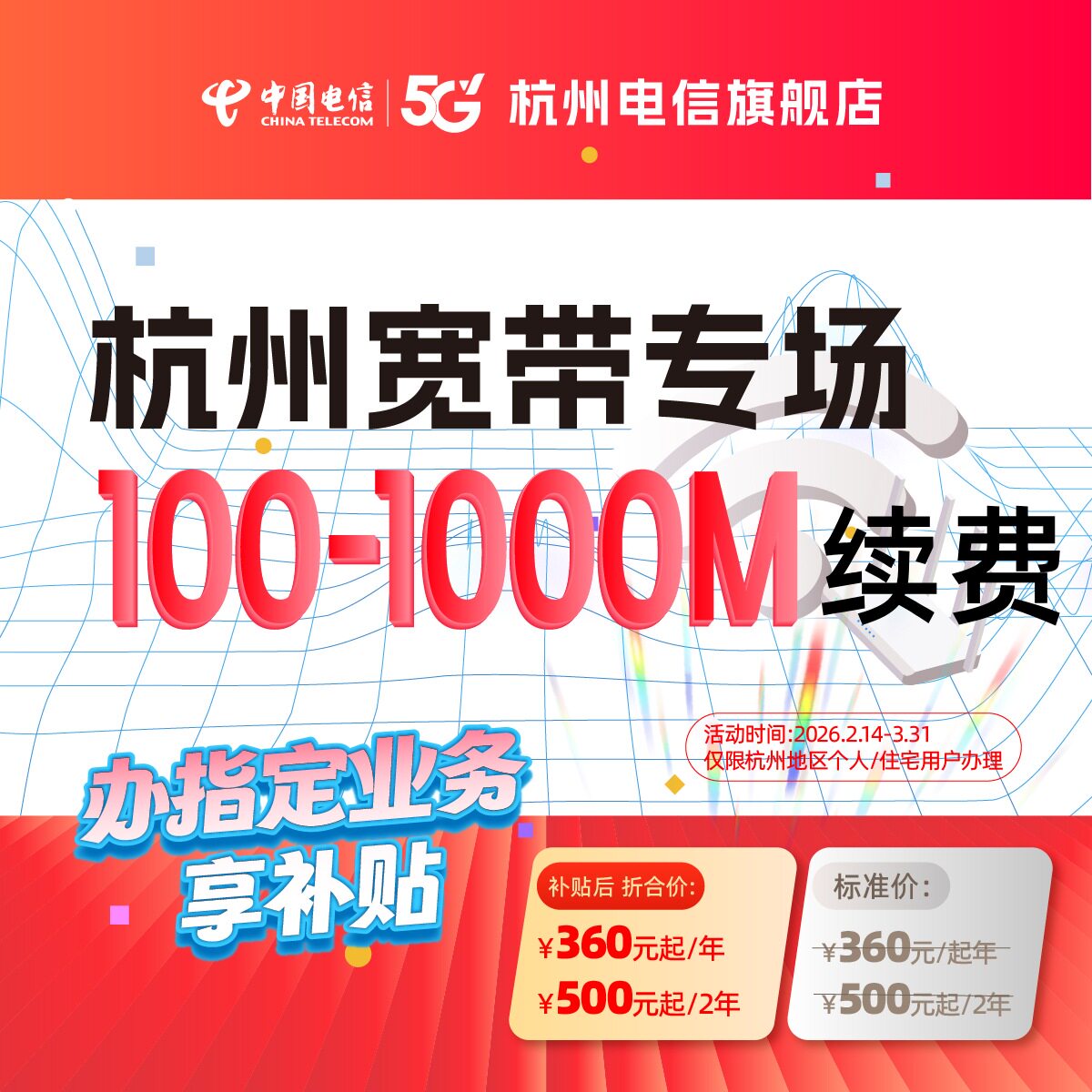 📚 续费官方旗舰店杭州浙江中国电信宽带办理新装短期上门宽带安装