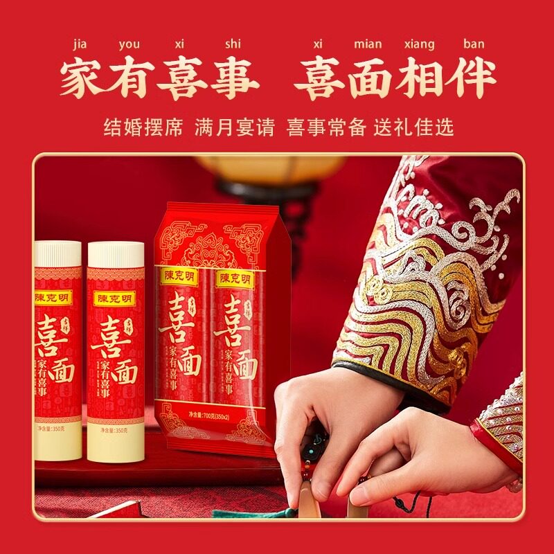 📚 陈克明喜面结婚喜面面条生日宝宝周岁婚宴订婚送礼伴手礼喜字面条