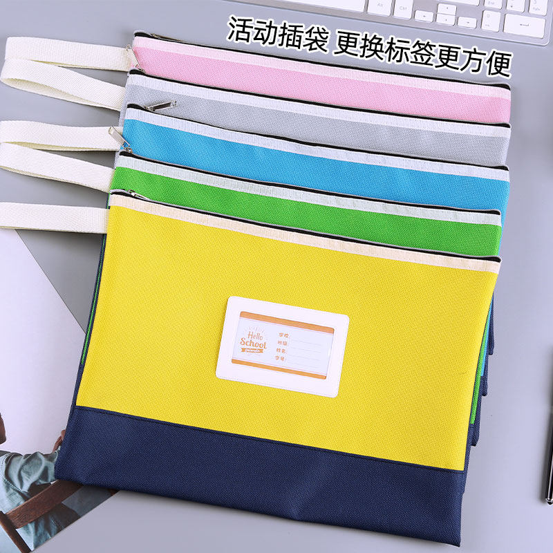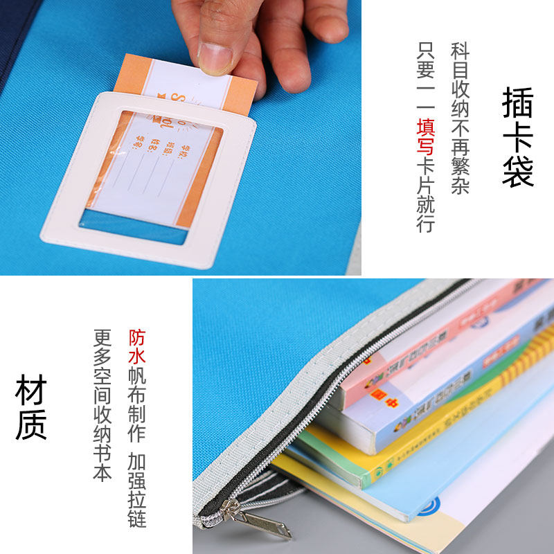 📚 A4科目分类文件袋学生用作业补课补习拎书袋小学生语数英语收纳插卡袋学科资料试卷多层帆布大容量拉链文件袋