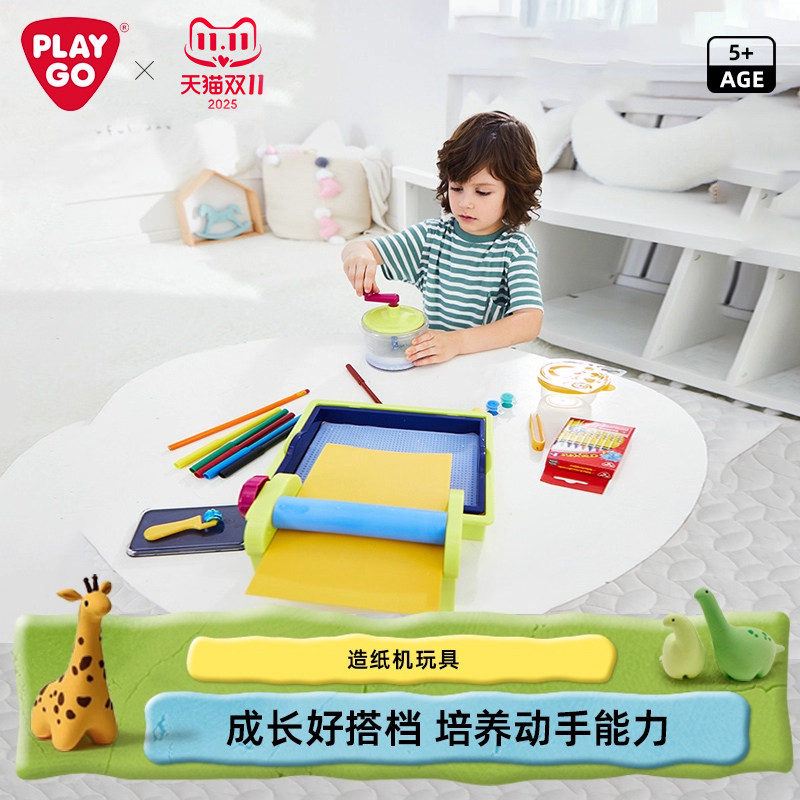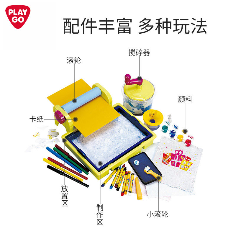 📚 Playgo儿童造纸术男女孩亲子互动手工制作DIY印刷再生造纸机玩具