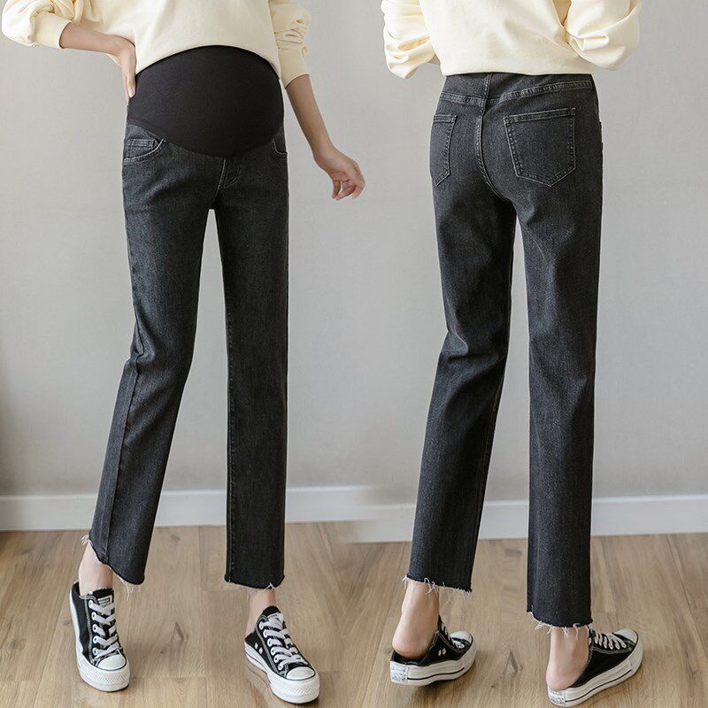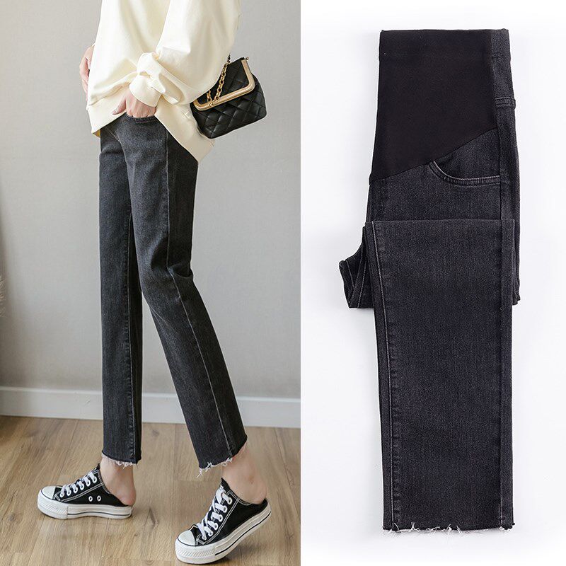 📚 孕妇裤子矮小个子150cm春秋装外穿打底宽松直筒牛仔裤烟管九分裤