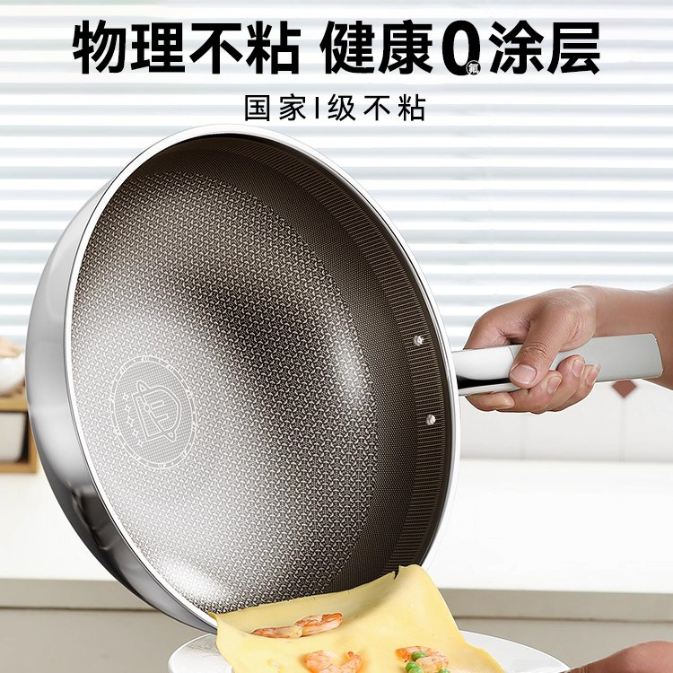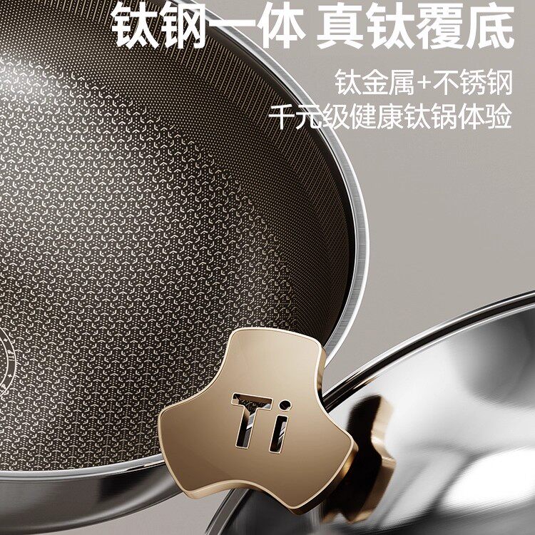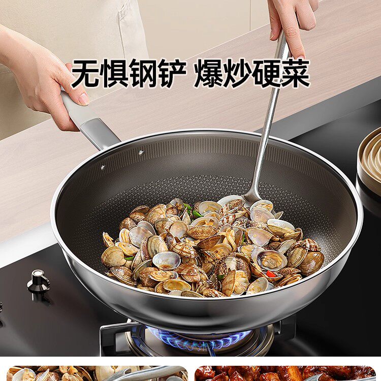 📚 艺雅璐食品不锈钢钛锅家用无涂层不粘锅电磁炉燃气灶专用蜂窝炒锅
