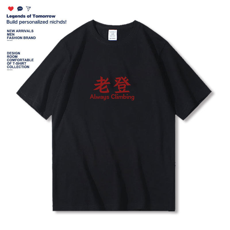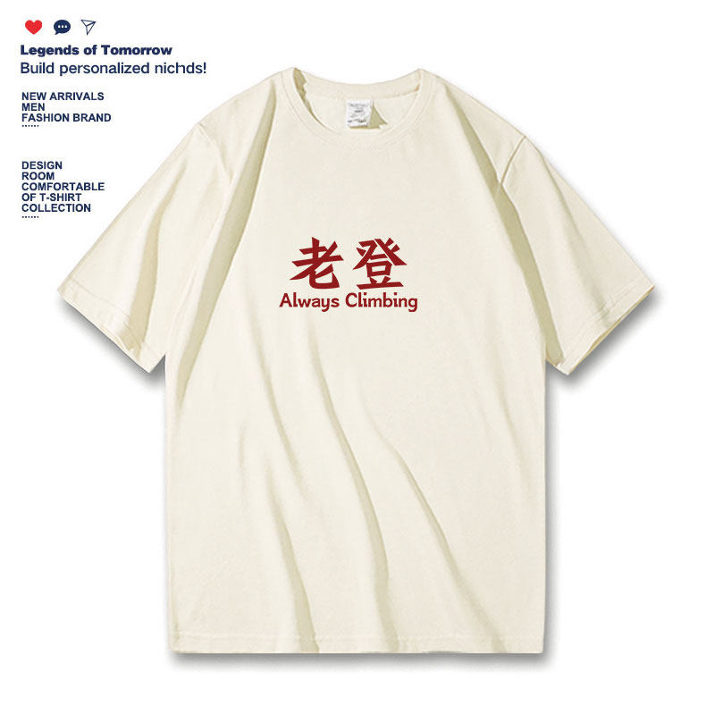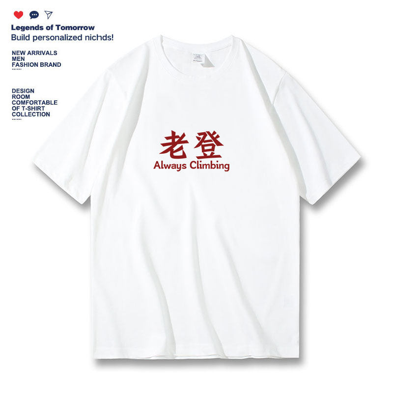 📚 Always climbing搞笑趣味文字老登印花短袖t恤男宽松休闲半袖体恤