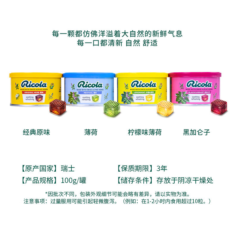 📚 Ricola进口利口乐润喉糖车银优代言护嗓子清凉口气柠檬薄荷糖100g