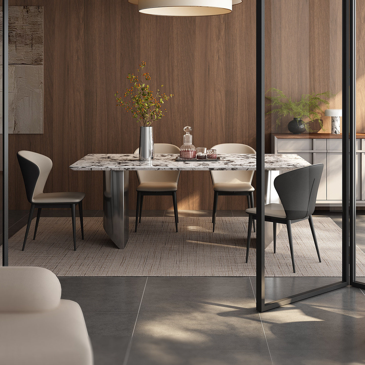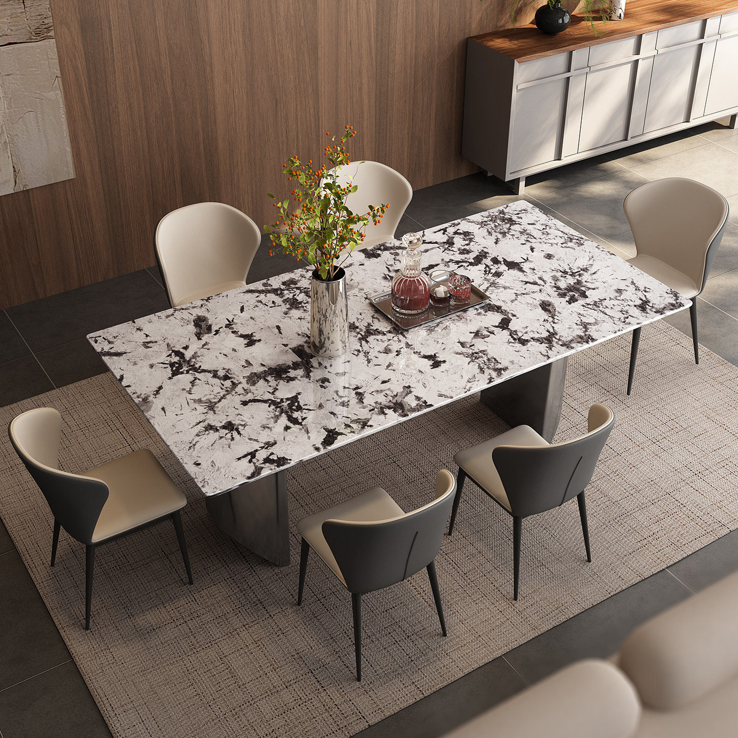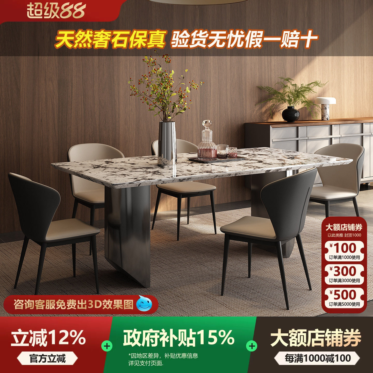 📚 宫殿威仪进口雪山飞狐奢石餐桌广东佛山高级感大理石餐桌椅组合