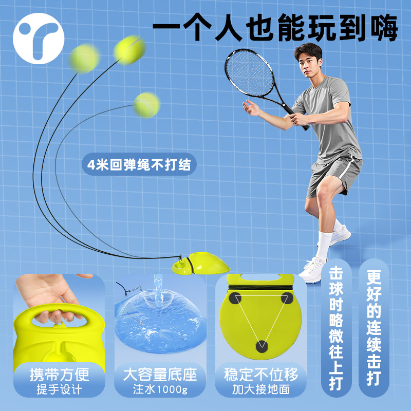 📚 网球拍回弹训练器单人打带线成人一个人打球拍自动绳弹力球全碳素