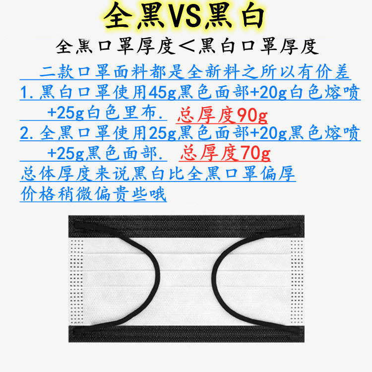 📚 黑白款独立包装加宽扁耳带加厚三层一次性口罩美容防尘防晒加厚