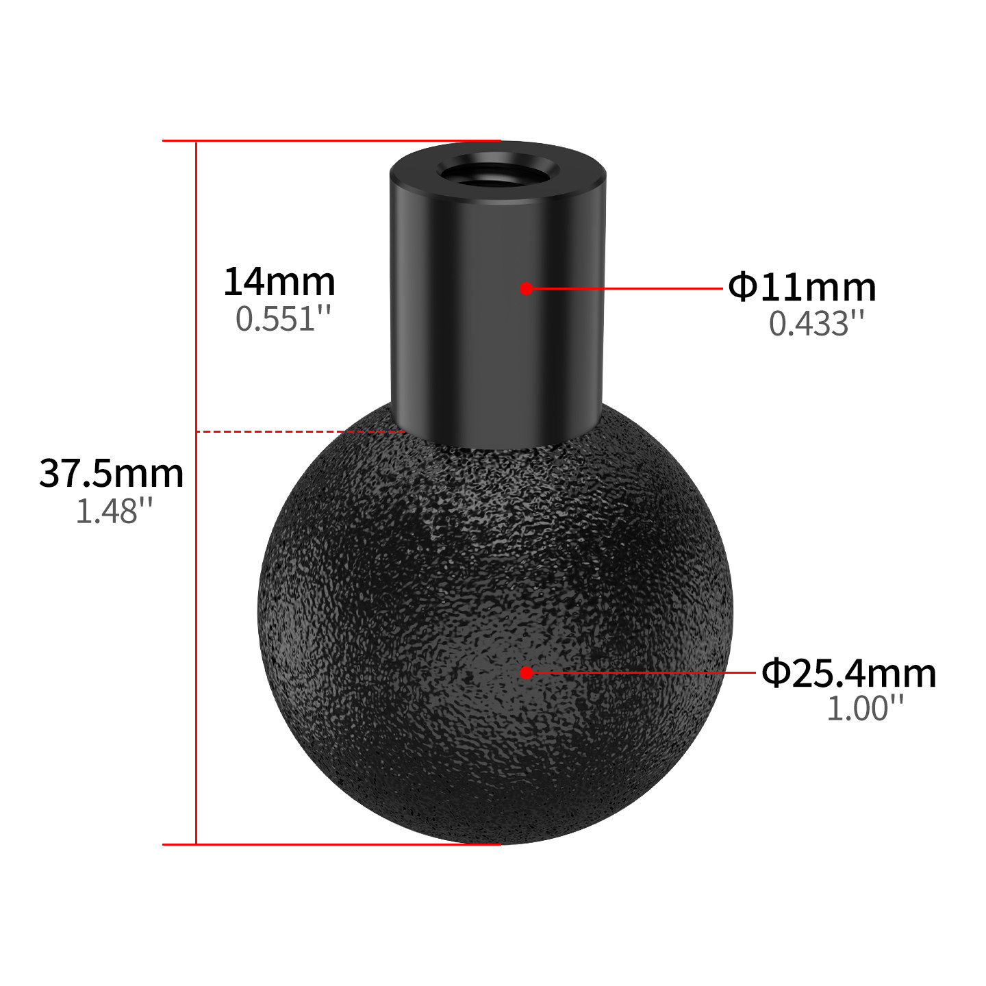 📚 一英寸球头支架25mm固定座1/4孔m6螺丝定位转接头包胶防滑连接座