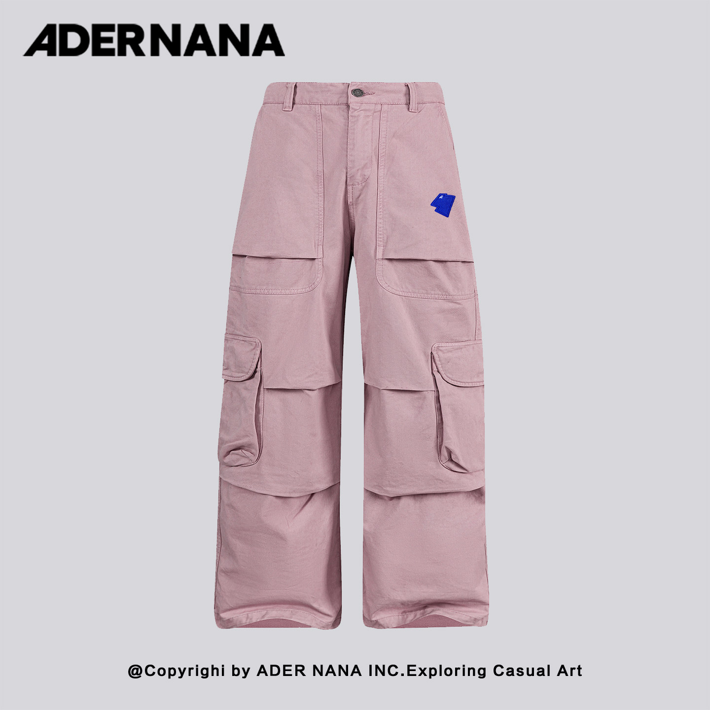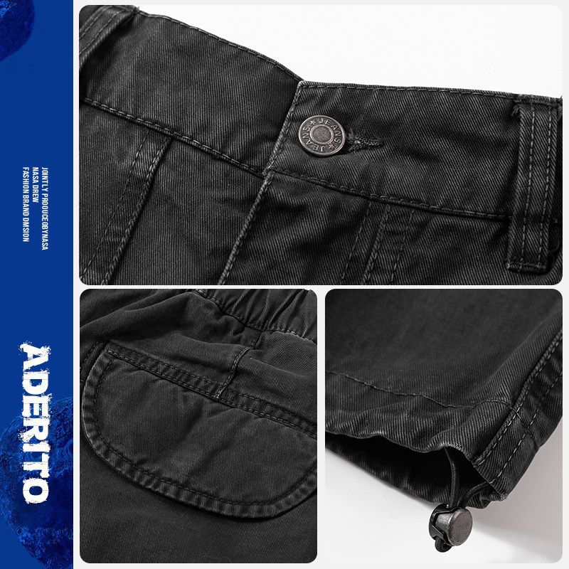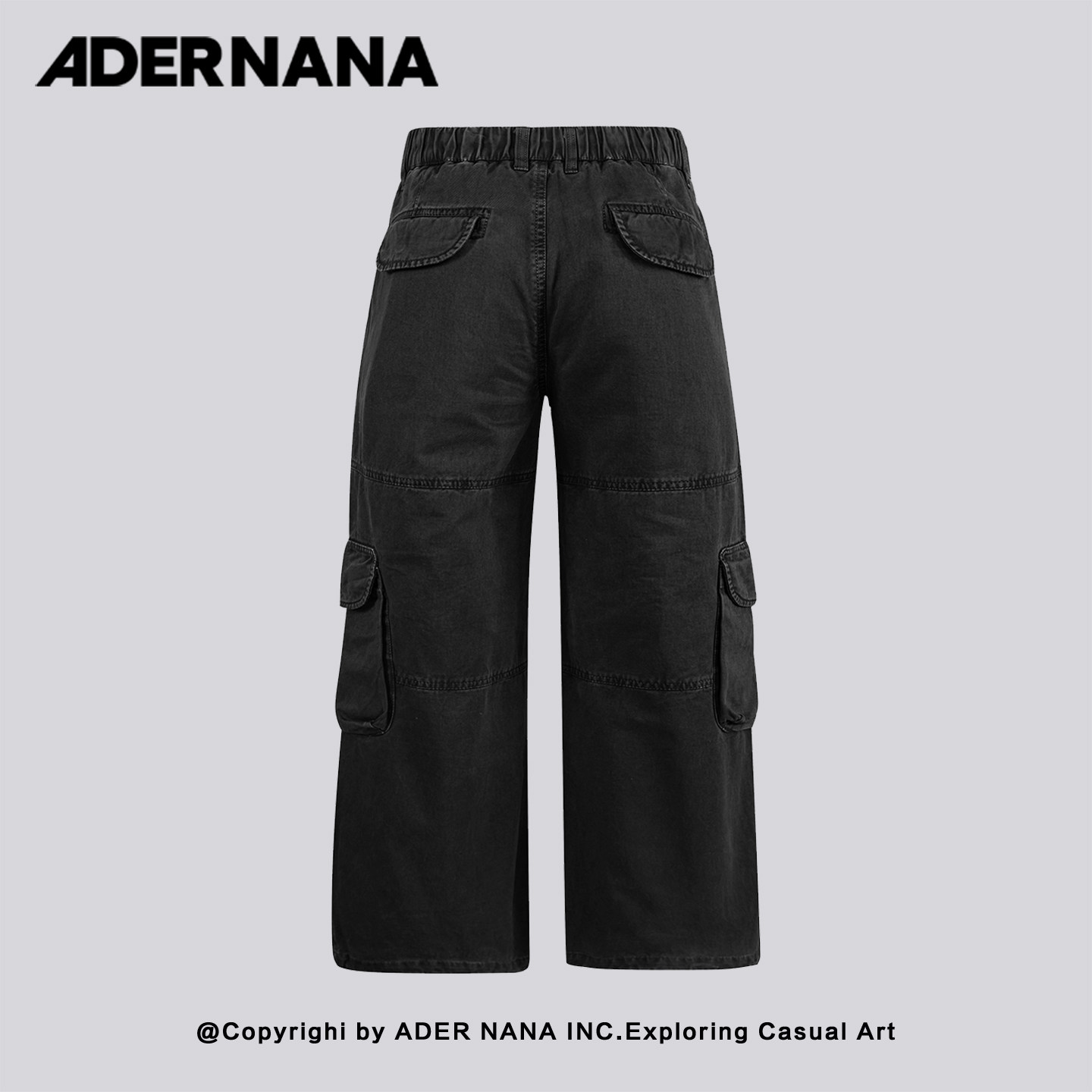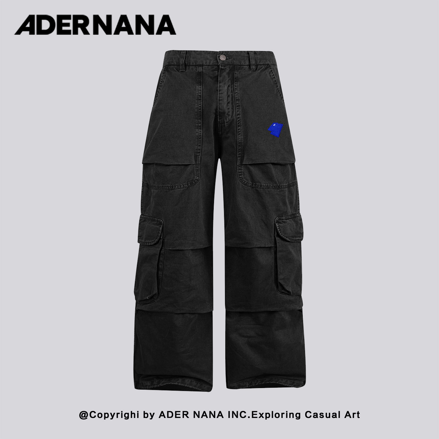 📚 韩国 ADER NANA工装风黑色直筒裤男宽松多口袋刺绣设计感裤子男士