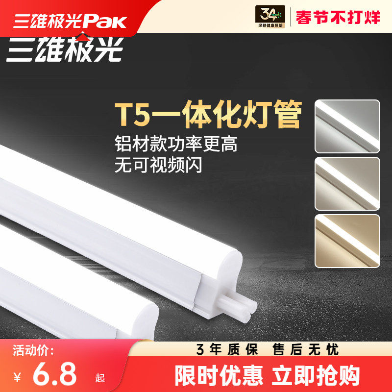 📚 三雄极光t5灯管一体化led支架1.2米超亮日光灯长条节能管