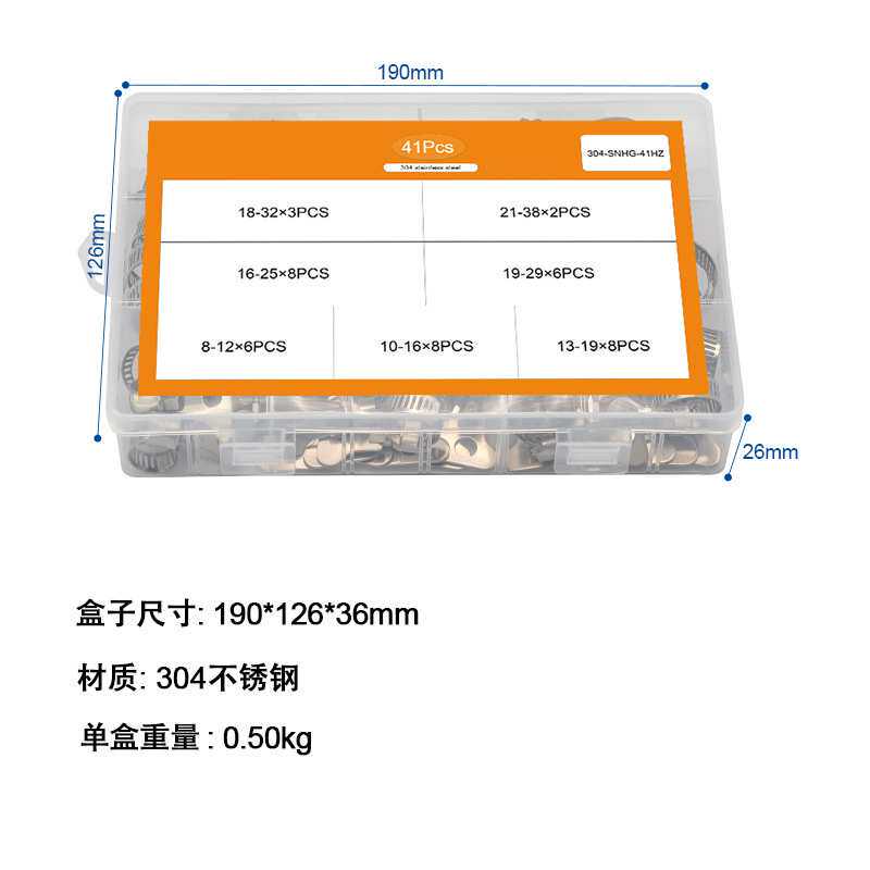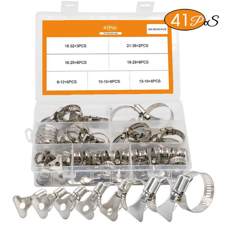 📚 41PCS喉箍美式手拧喉箍304不锈钢卡箍抱箍盒装套装管夹