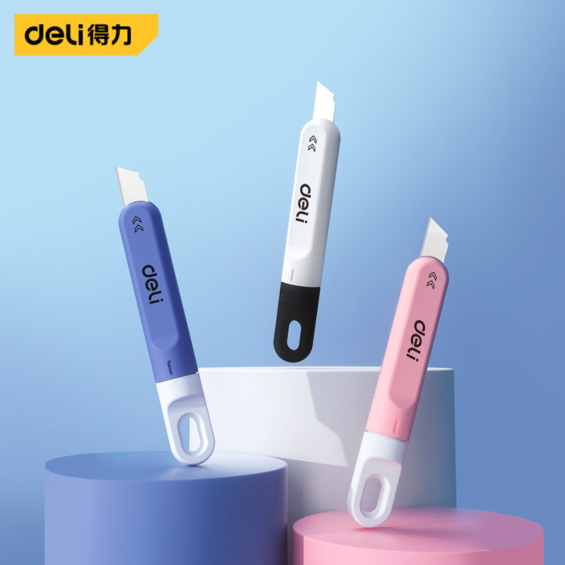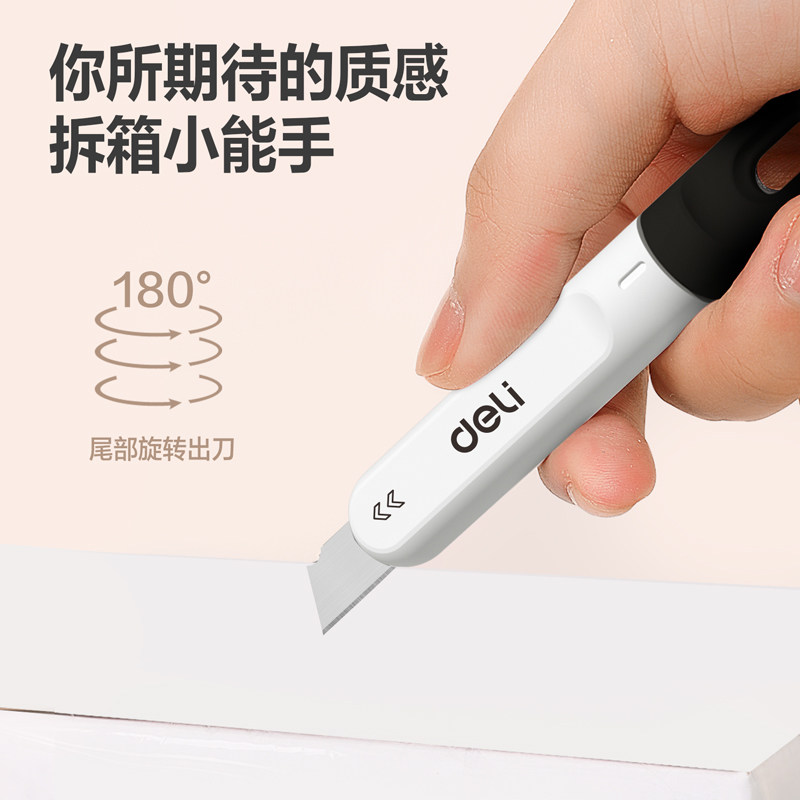 📚 得力美工刀开箱刀高颜值家居办公小刀学生用手工裁纸刀切纸刀旋转出刀片便携小巧拆快递拆箱神器