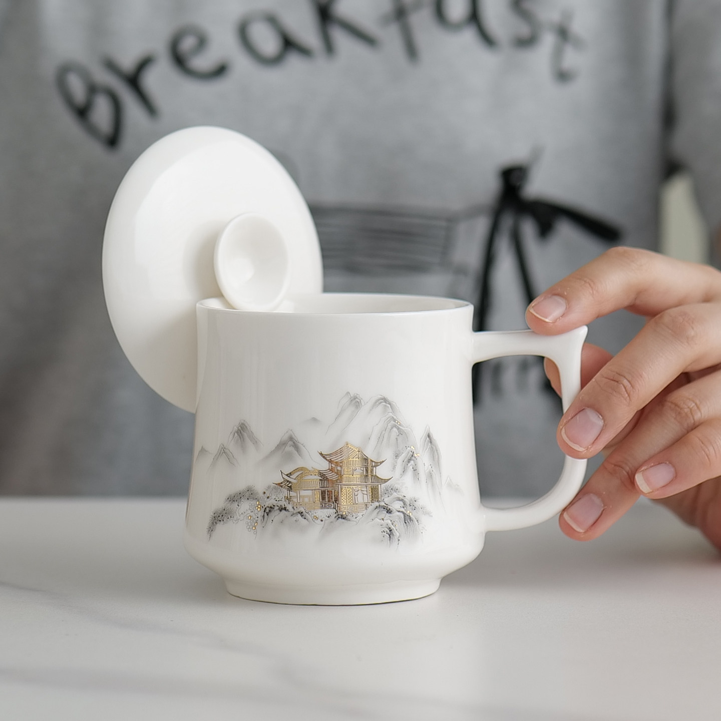 📚 陶瓷马克杯带盖羊脂玉瓷德化白瓷水杯家用杯子节庆礼品伴手礼刻字