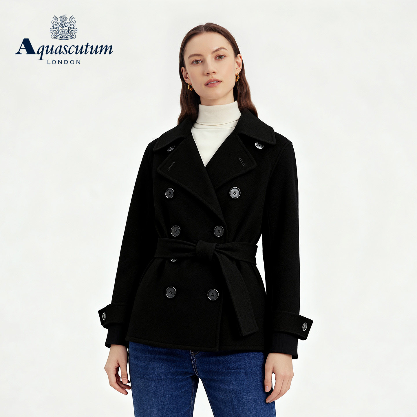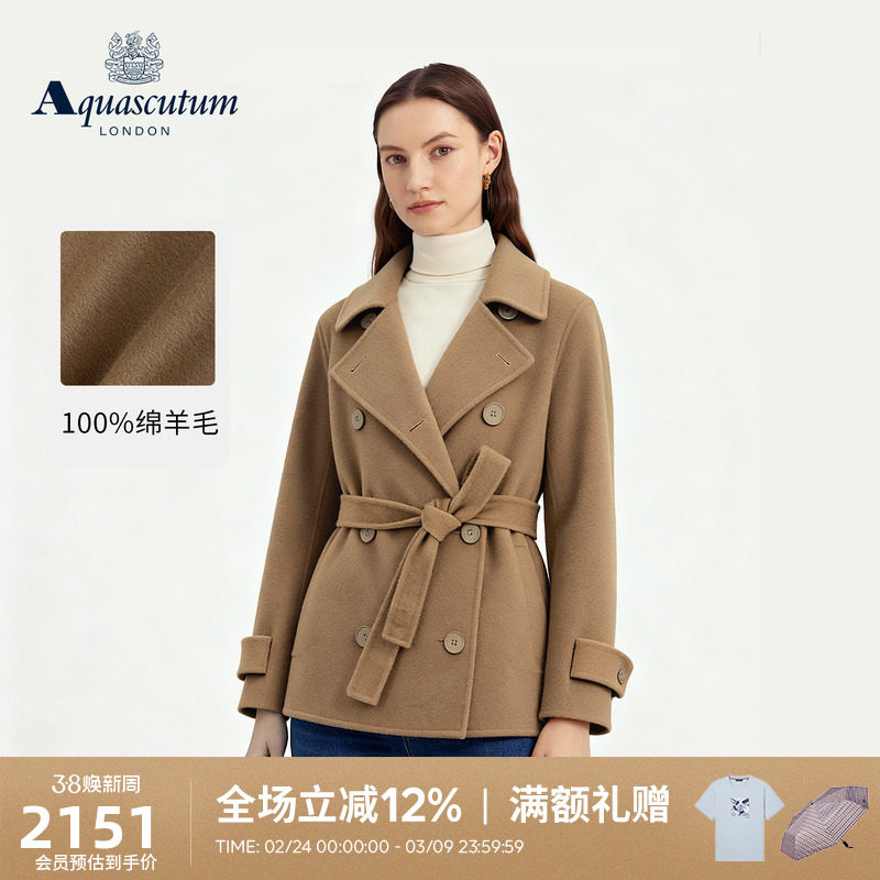 📚 Aquascutum/雅格狮丹秋冬新女短款绵羊毛大衣双排扣毛呢外套气质