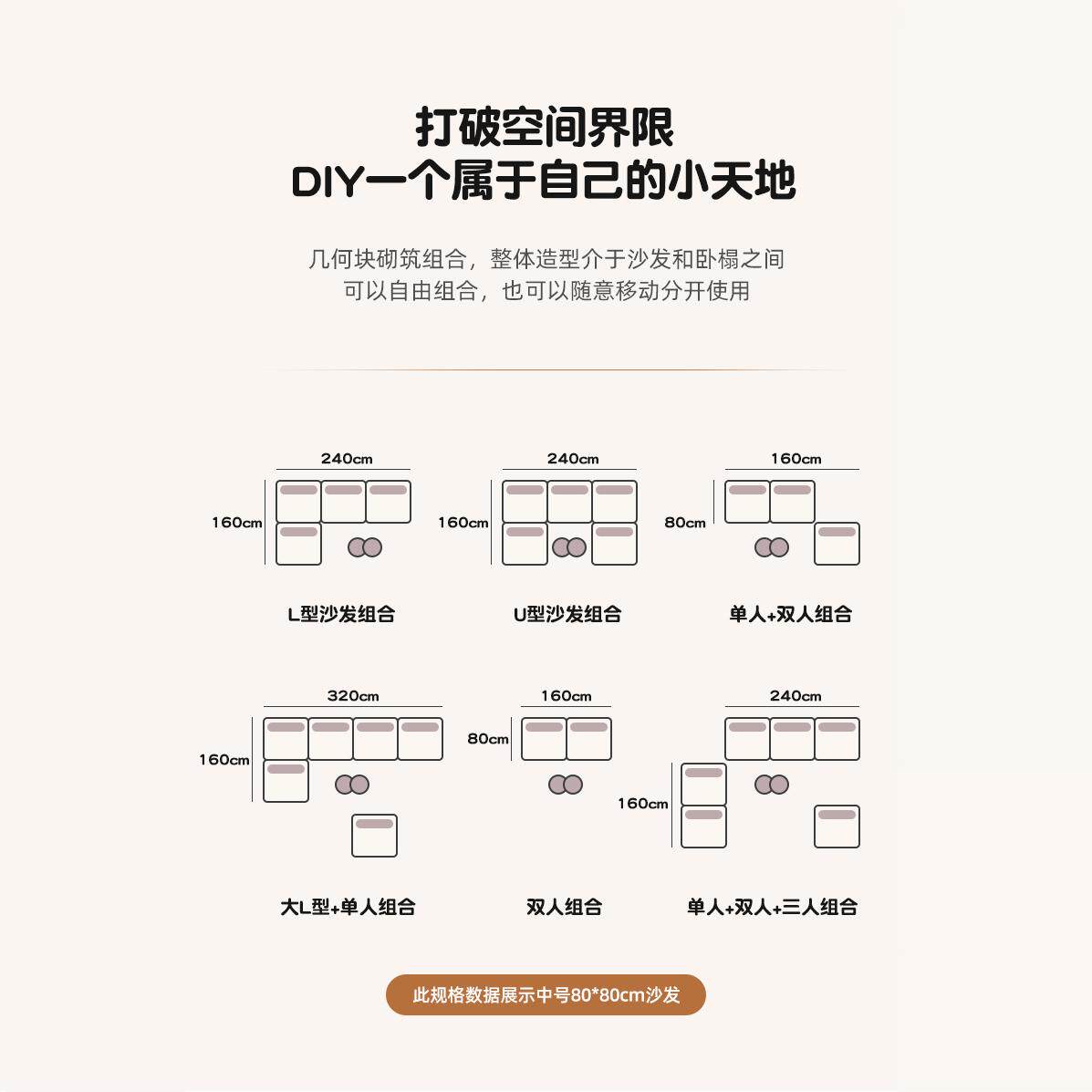 📚 豆腐块方块沙发组合榻榻米卧室躺椅意式简约懒人靠背客厅单人沙发