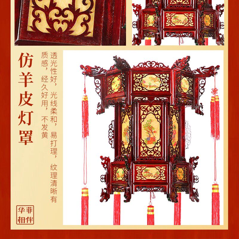 📚 中式仿古六角实木宫灯寺庙祠堂吊灯黄八仙阳台新春节过年灯笼挂饰