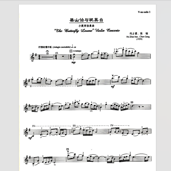 📚 梁山泊与祝英台 梁祝 小提琴协奏曲 另售合唱简谱钢琴伴奏正谱