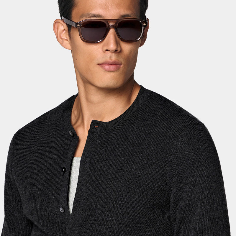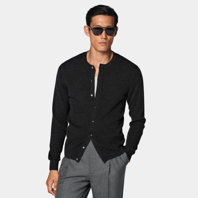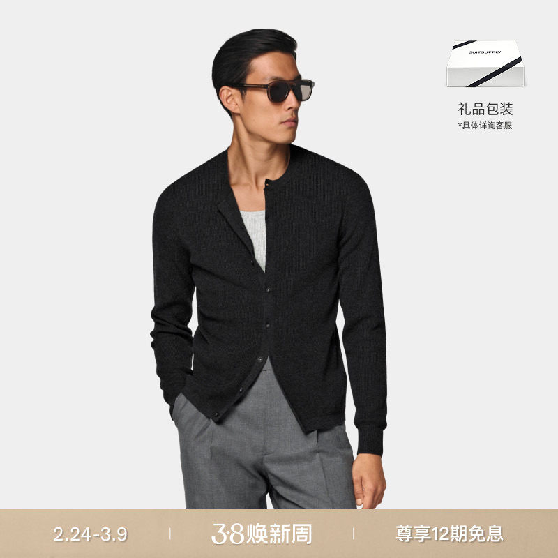 📚 26春季新品SUITSUPPLY深灰色羊毛罗纹开襟衫