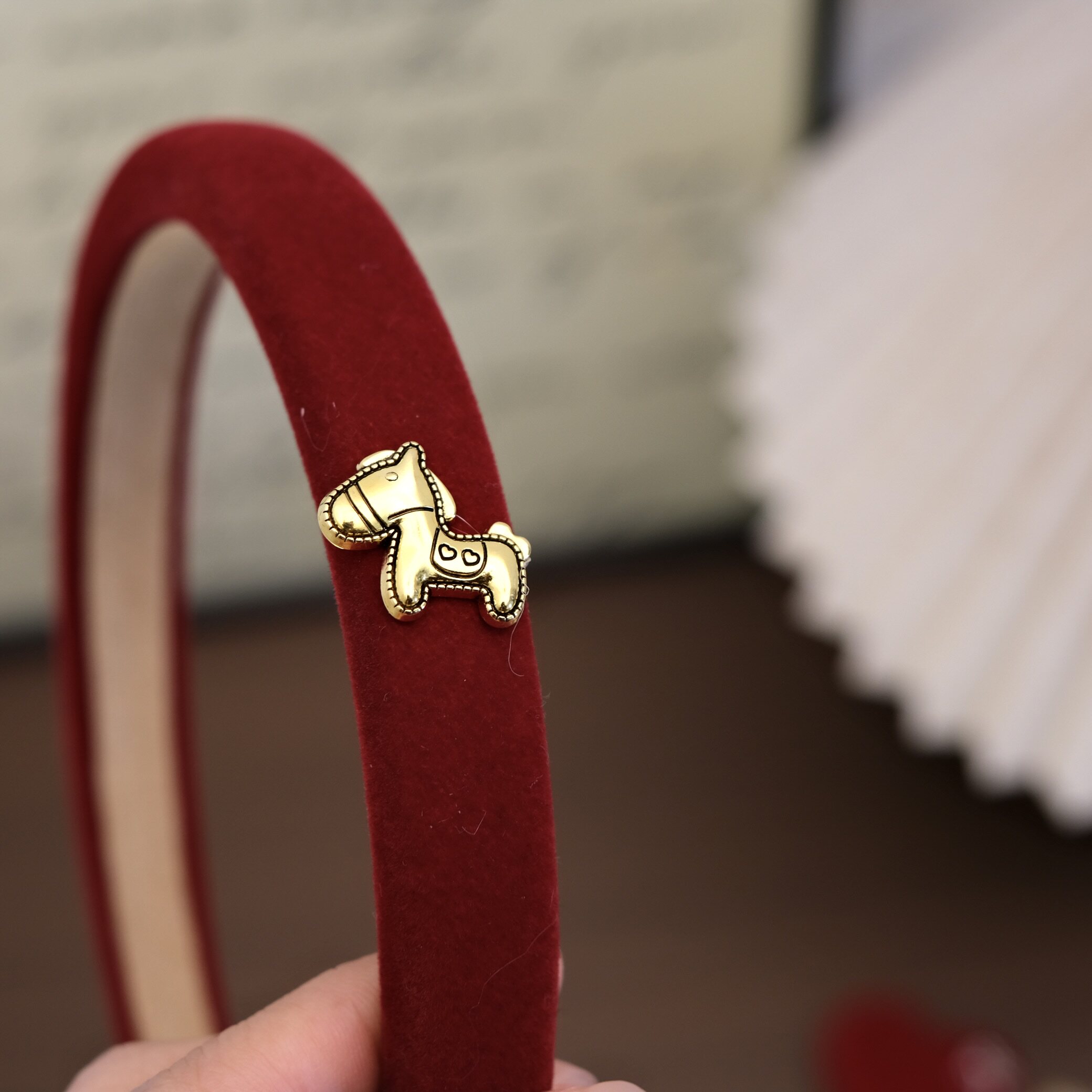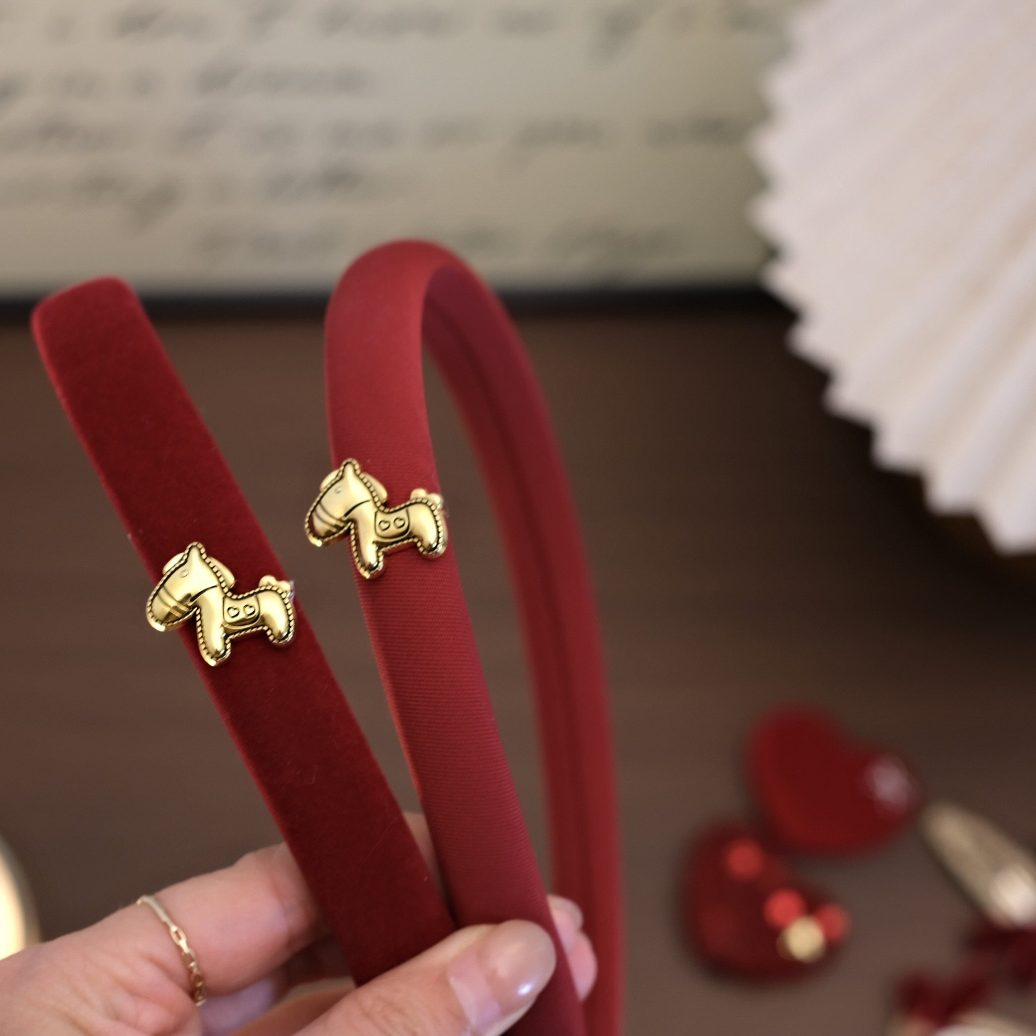 📚 马年鸿运发箍红色新年丝绒头箍百搭不勒头女孩头饰可爱小马金标