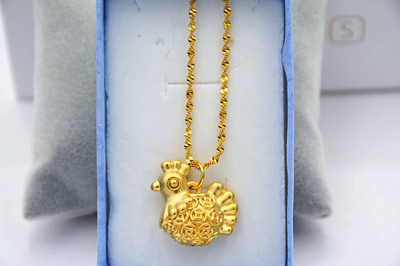 📚 包邮欧币金3D生肖鸡宝宝 镀24K越南沙金鸡吊坠本命年项链厚金首饰